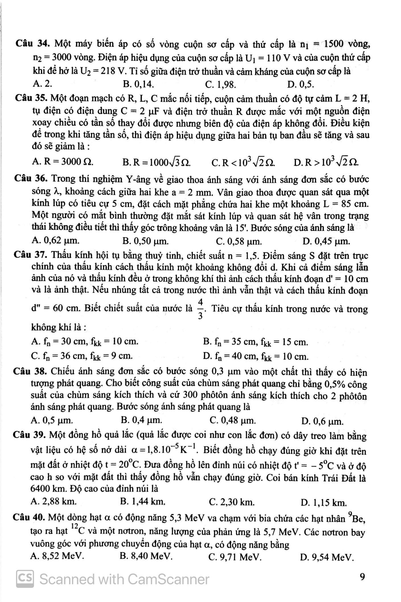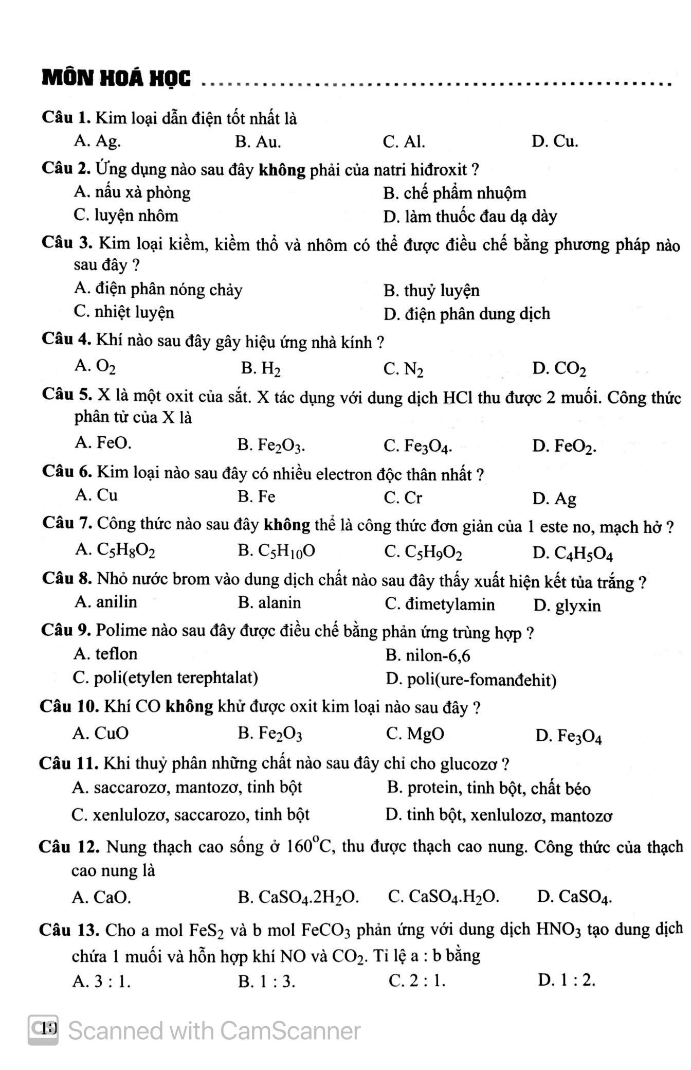 Phần 2: Các đề ôn luyện kỳ thi Trung học phổ thông Quốc gia các môn KHTN năm 2020