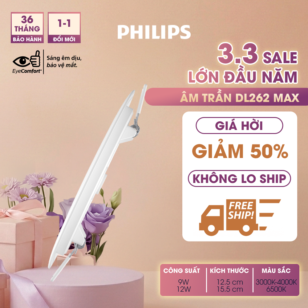 Thông số kỹ thuật Bộ đèn âm trần Philips LED Max DL262 Max siêu mỏng- công suất (9W, 12W)