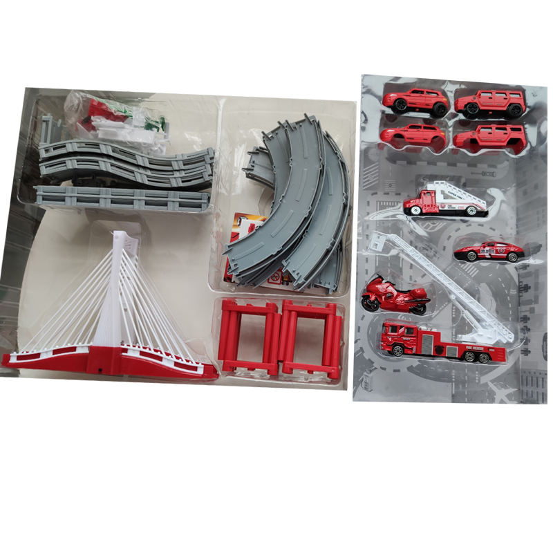 Trong bộ đồ chơi có đi kèm một hệ thống cầu phát sáng và phát nhạc mỗi khi có xe đi qua.
