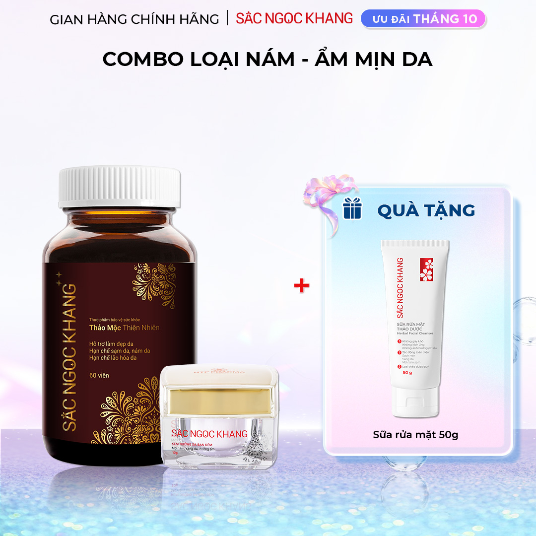 Thông số kỹ thuật Bộ đôi trong uống - ngoài thoa Sắc Ngọc Khang: Sắc Ngọc Khang ++ (60 viên) + Kem dưỡng da ban đêm 10g