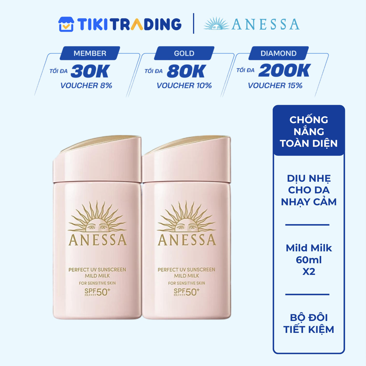 Chào bạn, cảm ơn bạn đã chia sẻ cảm nhận và đánh giá sản phẩm Bộ đôi 2 Kem chống nắng dạng sữa dưỡng da dịu nhẹ cho da nhạy cảm & trẻ em Anessa SPF 50+ PA++++ 60ml. Anessa hy vọng sẽ tiếp tục nhận được sự tin yêu và ủng hộ của bạn trong thời gian tới. Trường hợp cần hỗ trợ thêm thông tin, bạn có thể liên hệ với Anessa ở mục Chat để được hỗ trợ nhanh chóng nhé. Chúc bạn luôn tươi trẻ và xinh đẹp cùng Anessa ❤