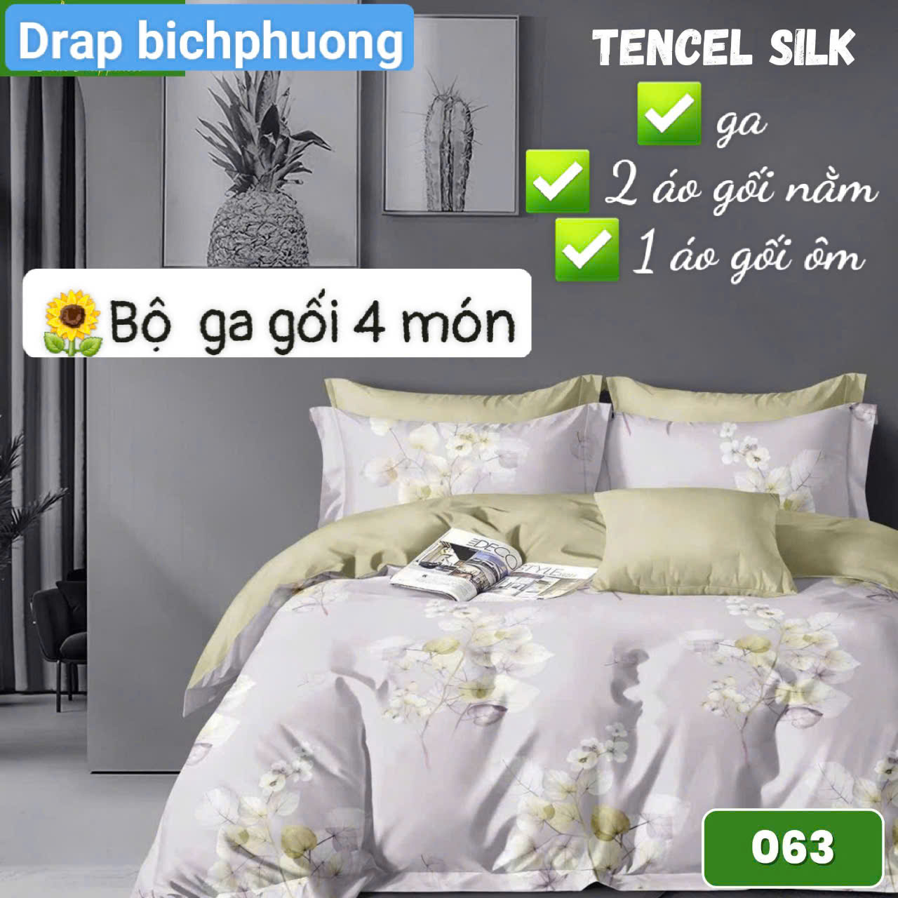 BỘ DRAP GỐI LỤA TENCEL 4 MÓN GỒM