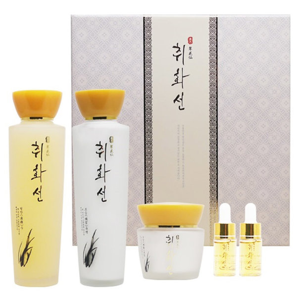 Bộ sản phẩm Dưỡng da Đông y CHWI HWA SEON giúp làn da cải thiện tình trạng lão hóa, tăng cường khả năng miễn nhiễm, khả năng cân bằng ẩm tự nhiên, dưỡng da căng mịn và trắng hồng nhờ kết hợp các thành phần từ nhân sâm, nấm linh chi đỏ, rễ cam thảo,… Mang lại làn da láng mượt và tươi trẻ hơn bao giờ hết.