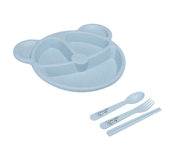 Khay ăn dặm 3 ngăn 4 món ( muỗng , đũa , nỉa )