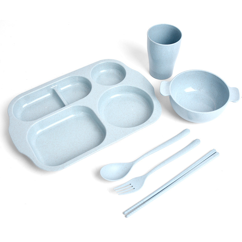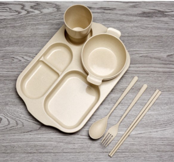 - Khay ăn dặm lúa mạch bao gồm: 1 khay + 1 bát + 1 cốc + 1 thìa + 1 đôi đũa + 1 dĩa