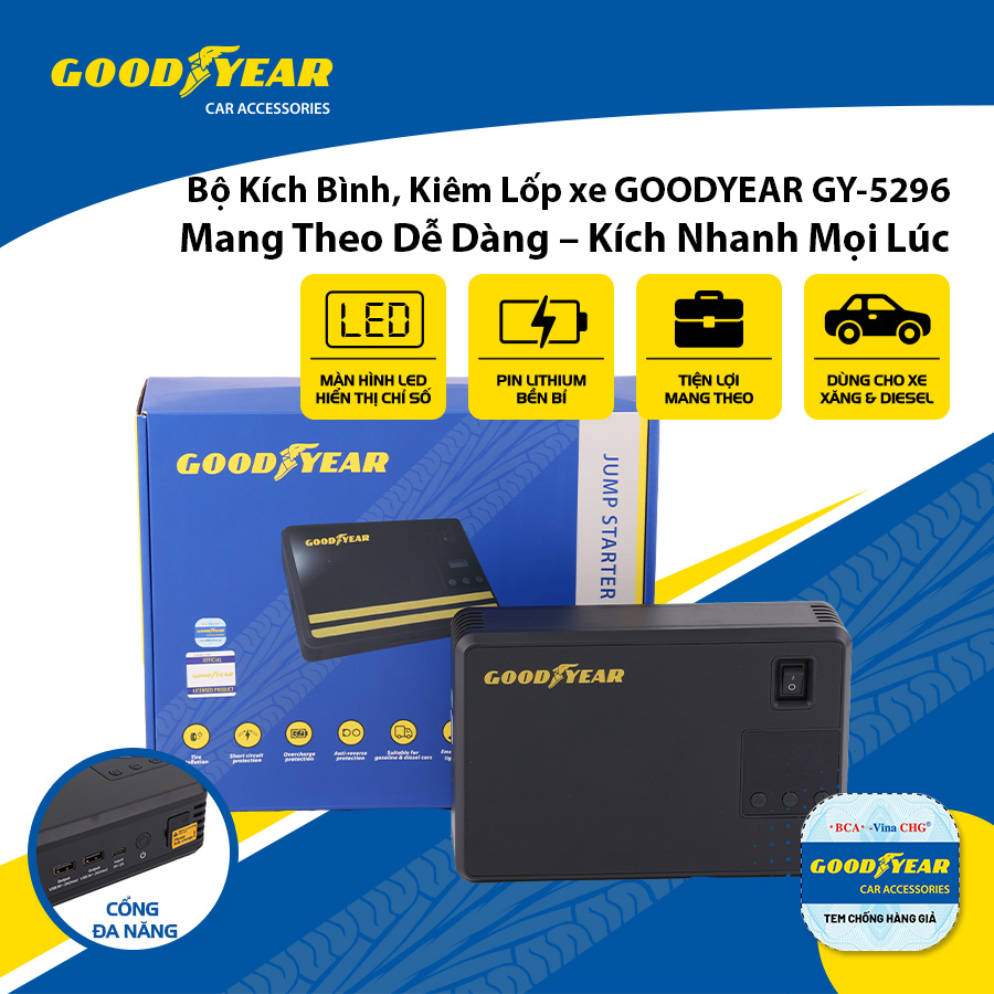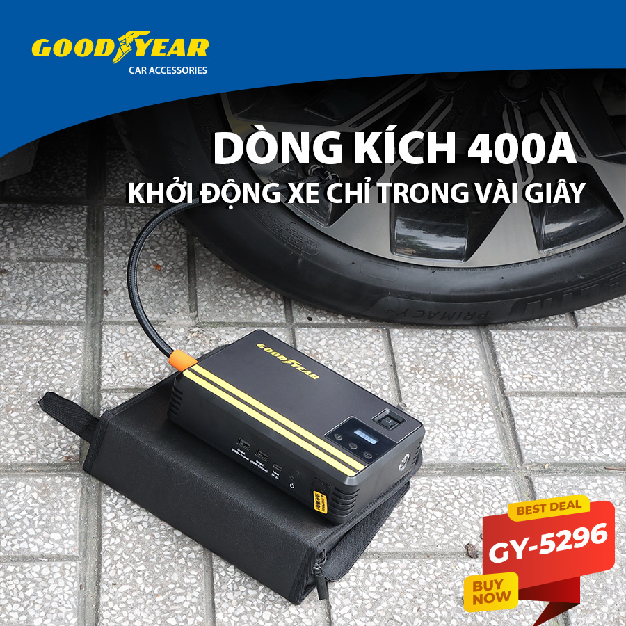 Bộ Kích Bình 400A Kiêm Bơm Lốp Xe GOODYEAR GY-5296 Đa Chức Năng Sạc Dự Phòng 10400mAh Đèn LED Khẩn Cấp