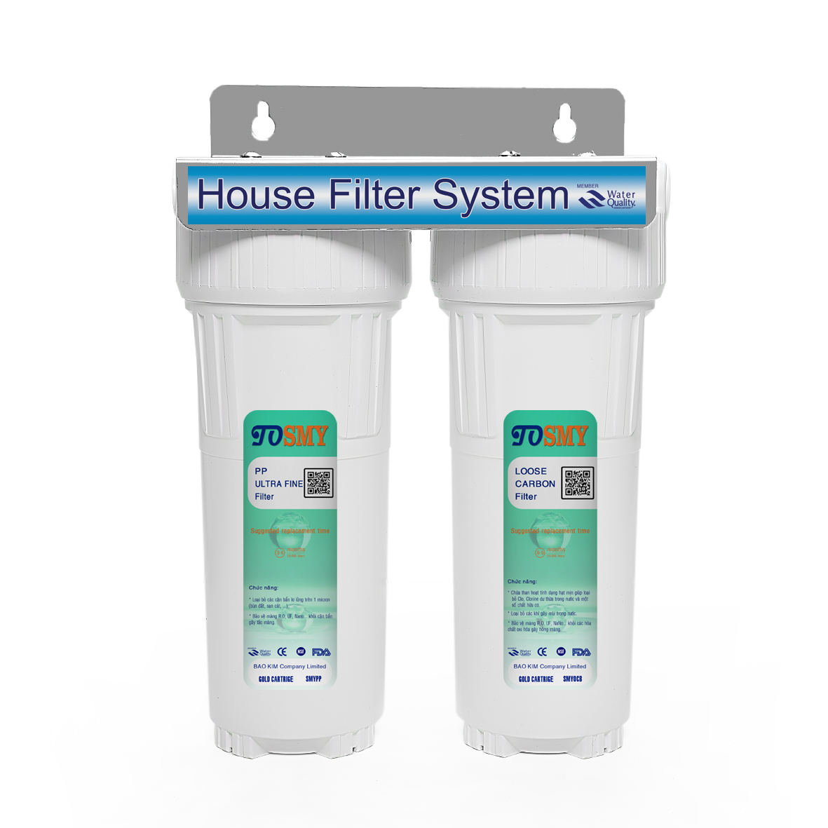 Bộ lọc nước 2 giai đoạn 10 inch SMY 2 gioăng chuyên lọc nước máy, nước giếng có độ nhiễm phèn thấp sử dụng trong việc nấu ăn, nấu nước uống, rửa rau, rửa chén, . . .