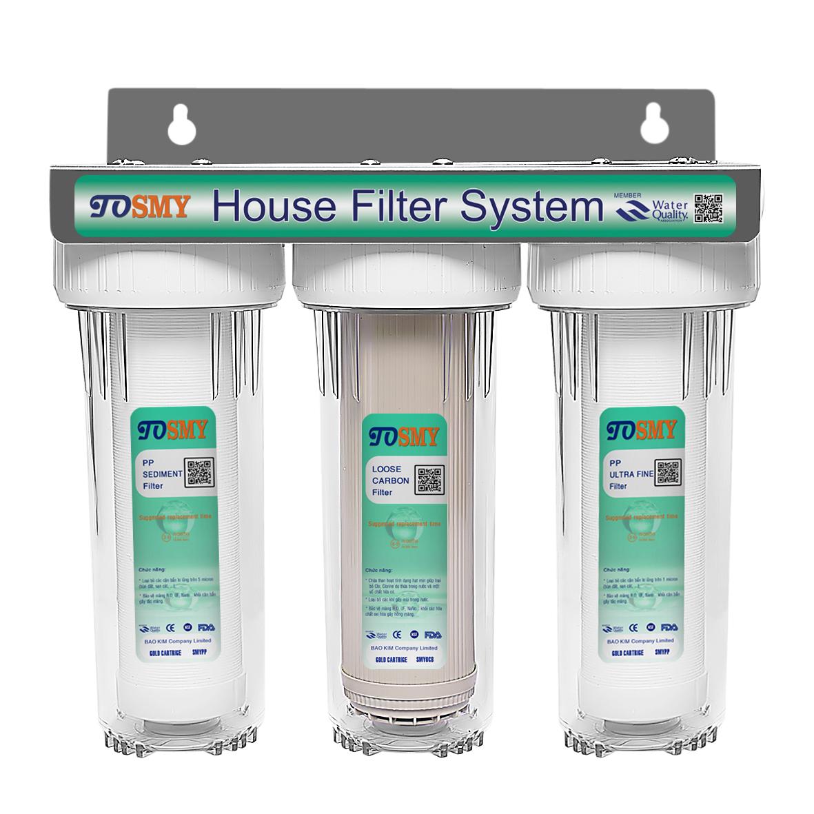 Bộ lọc nước 3 giai đoạn 10 inch SMY 2 gioăng chuyên lọc nước máy, nước giếng có độ nhiễm phèn thấp sử dụng trong việc nấu ăn, nấu nước uống, rửa rau, rửa chén, . . .