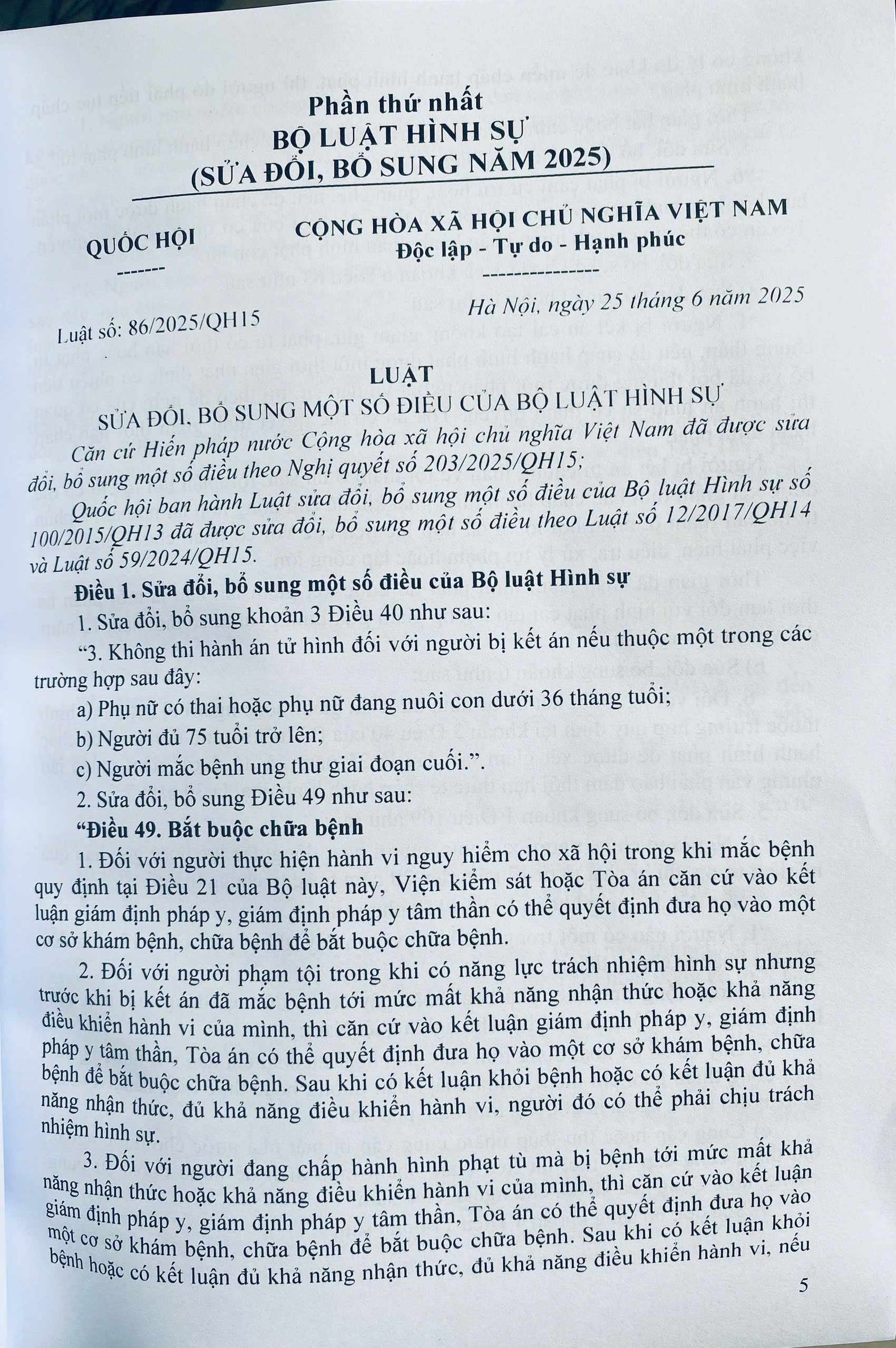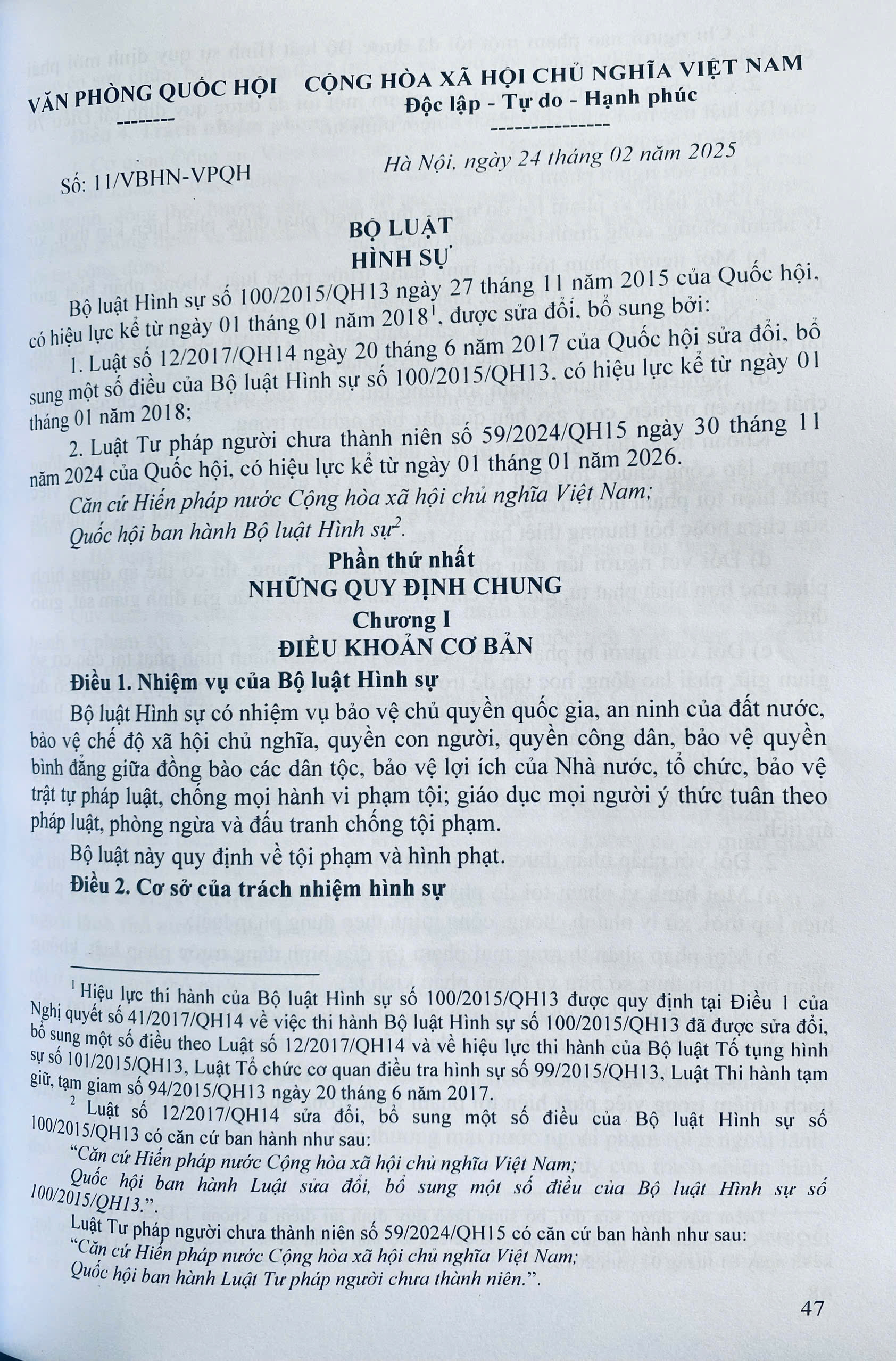 Phần thứ nhất. BỘ LUẬT HÌNH SỰ (SỬA ĐỔI, BỔ SUNG NĂM 2025)