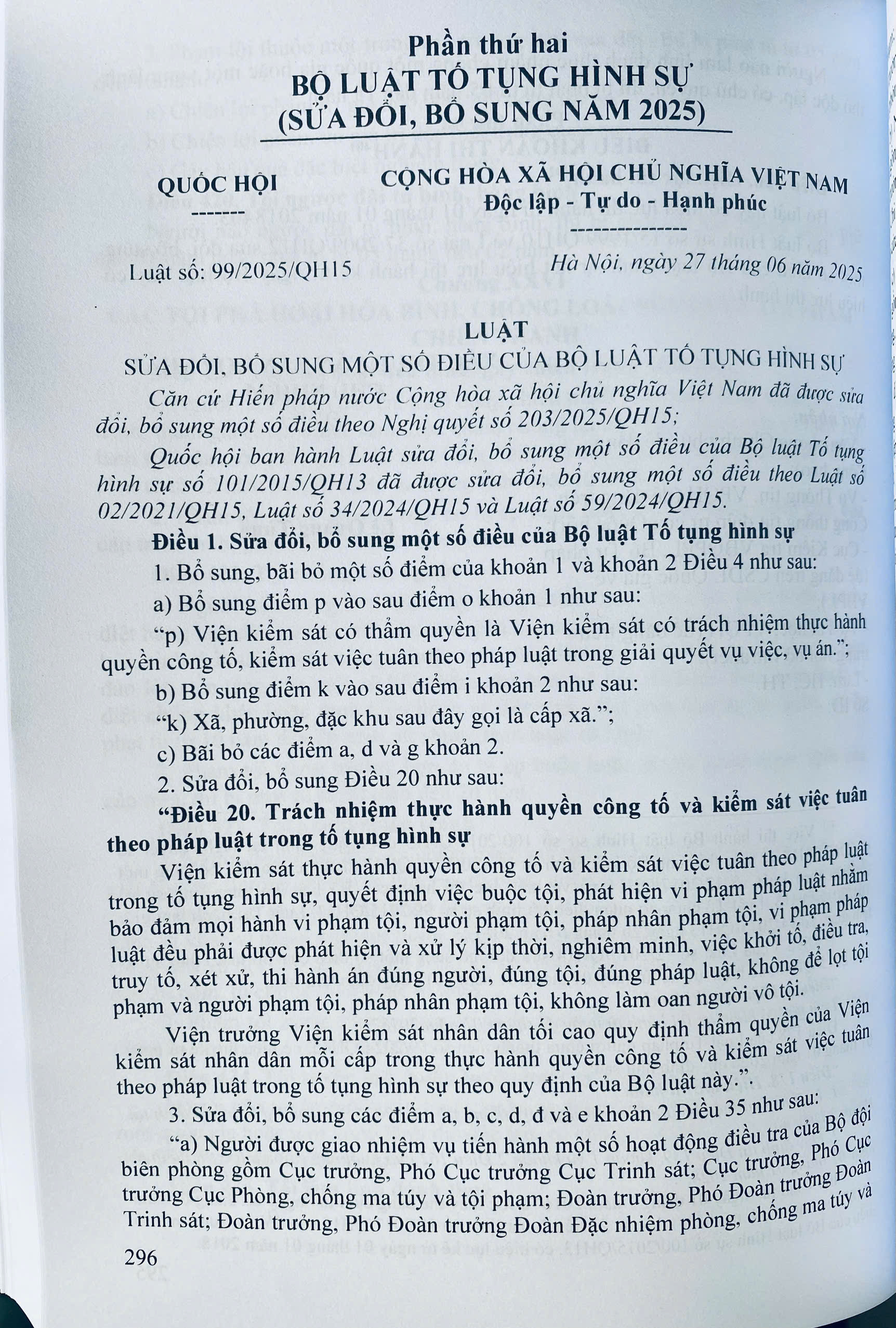Phần thứ hai. BỘ LUẬT TỐ TỤNG HÌNH SỰ (SỬA ĐỔI, BỔ SUNG NĂM 2025)