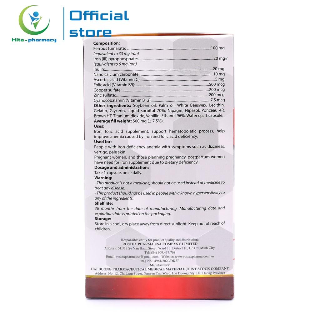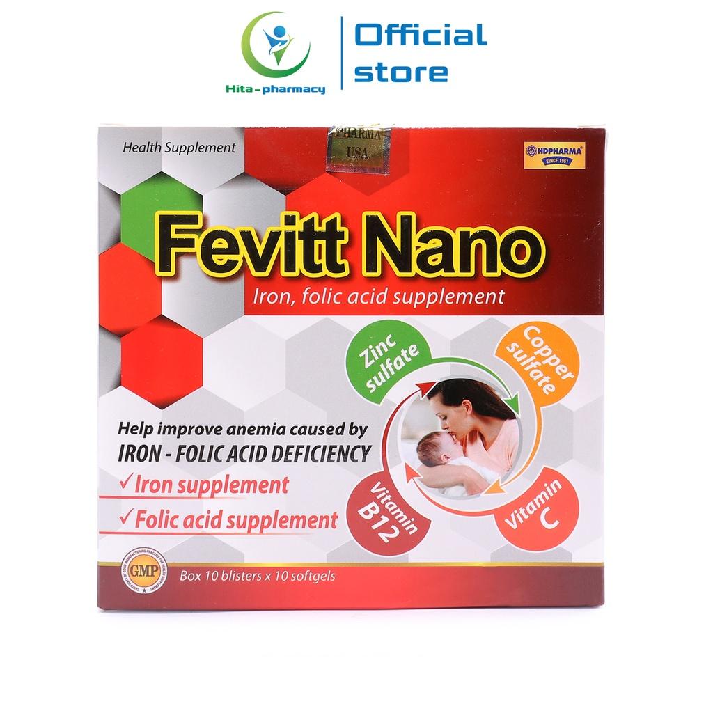 Thông số kỹ thuật Bổ máu Fevitt Nano HDPHARMA bổ sung Sắt hữu cơ Fumarat, Acid Folic 100 viên