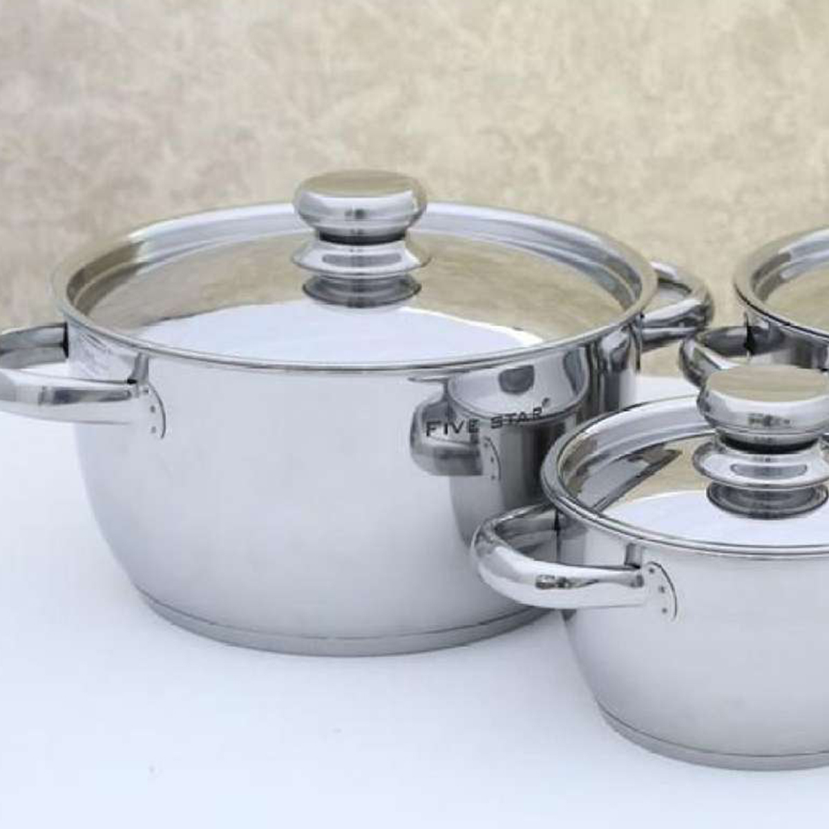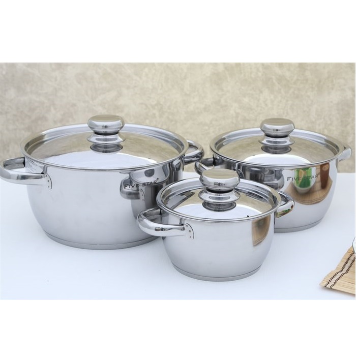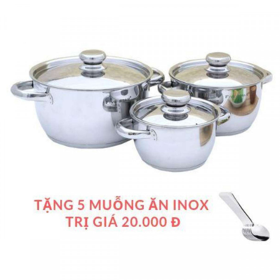 Bộ Nồi Inox 430 Bếp Từ 3 Chiếc Nắp Inox Fivestar Tặng 5 Muỗng Ăn được làm từ chất liệu inox 430 sáng bóng, đẹp mắt, an toàn cho sức khỏe.Sử dụng được trên bếp gas, bếp hồng ngoại, bếp từ.