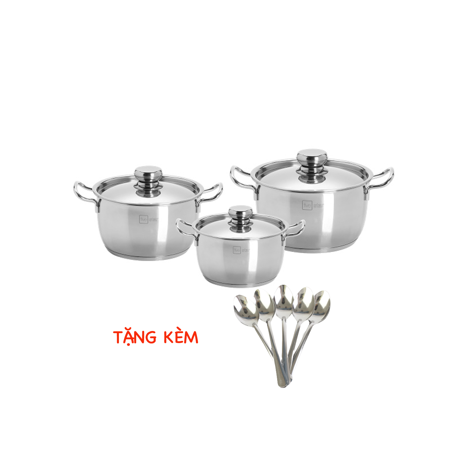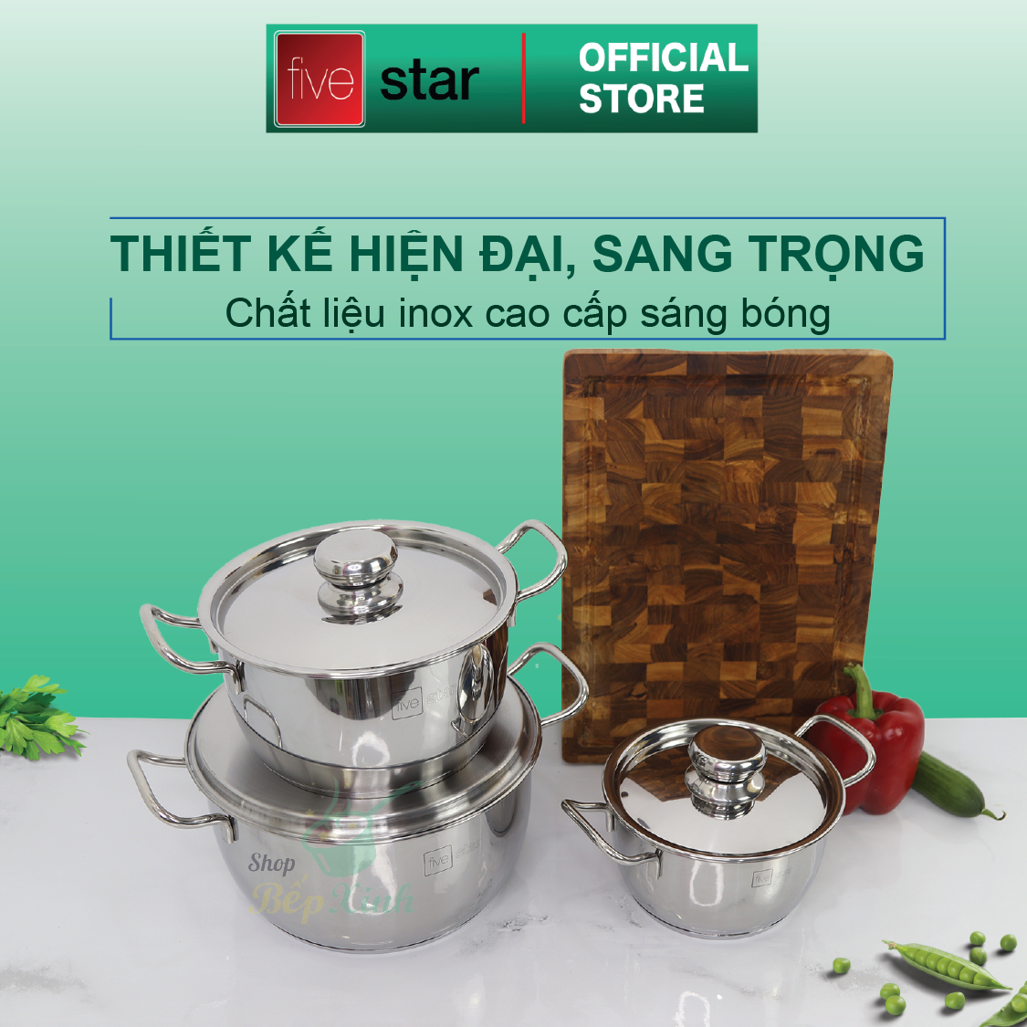 Bộ Nồi Inox 430 Bếp Từ Fivestar 3 Chiếc Nắp Inox Tặng 5 Muỗng Ăn Inox