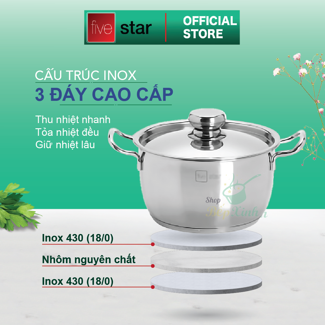 Thông số kỹ thuật Bộ Nồi Inox 430 Bếp Từ Fivestar 3 Chiếc Nắp Inox Tặng 5 Muỗng Ăn Inox