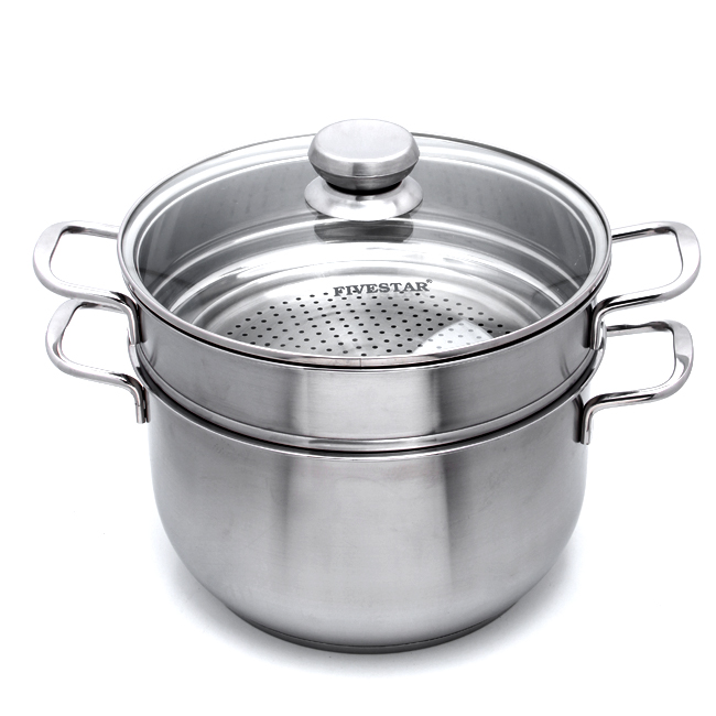 - Bộ nồi xửng nắp kiếng Fivestar ST26-3DG dùng được trên cả bếp gas, bếp hồng ngoại và bếp từ.