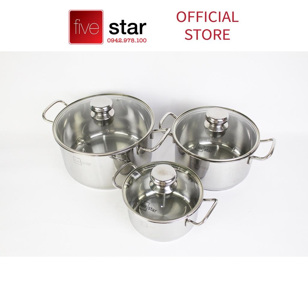 Bộ nồi xửng chảo 3 đáy inox 430 cao cấp FiveStar Standard 6 món bếp từ nắp kính tặng 5 muỗng inox