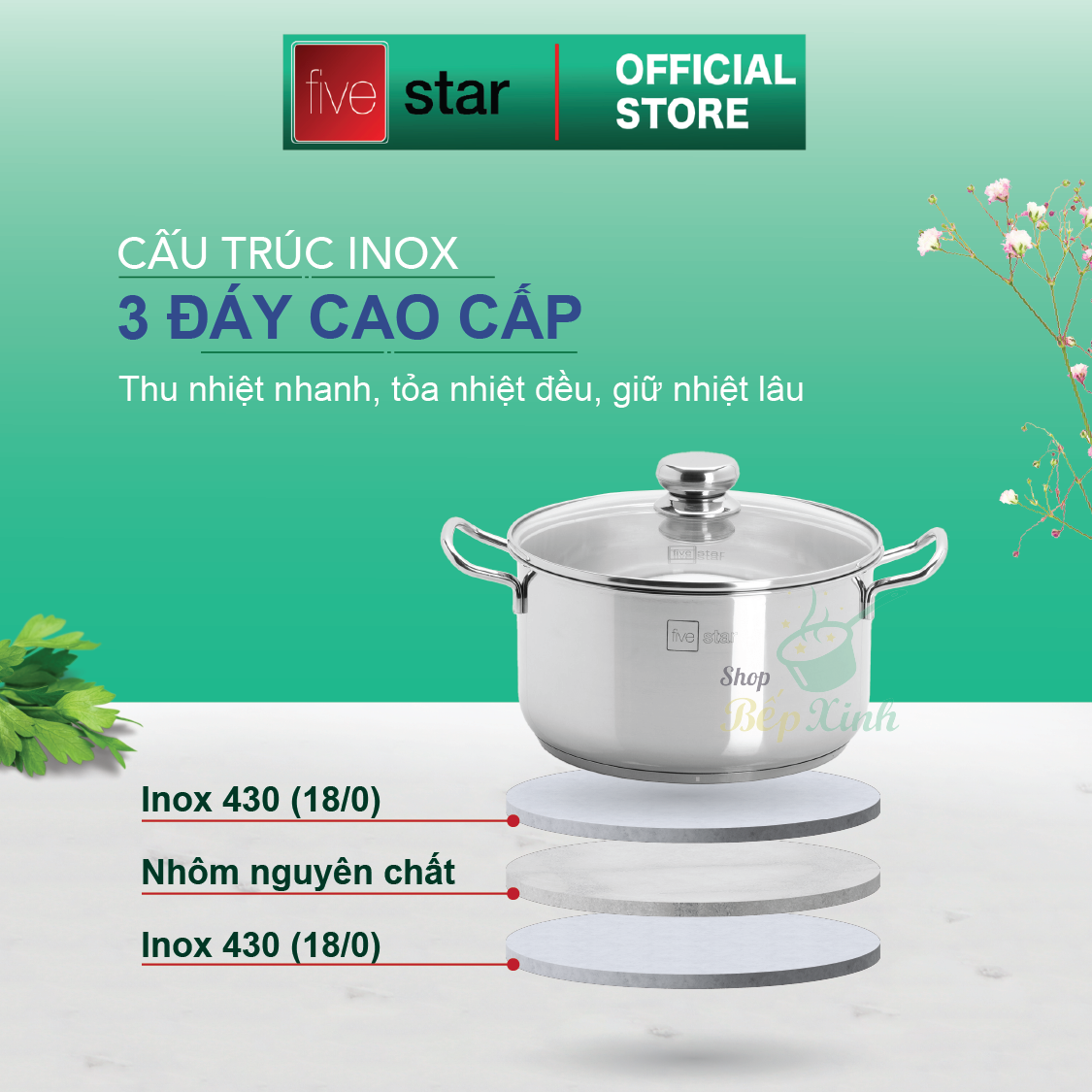 Thông số kỹ thuật Bộ nồi xửng Fivestar 4 món nắp kính tặng 2 vá canh
