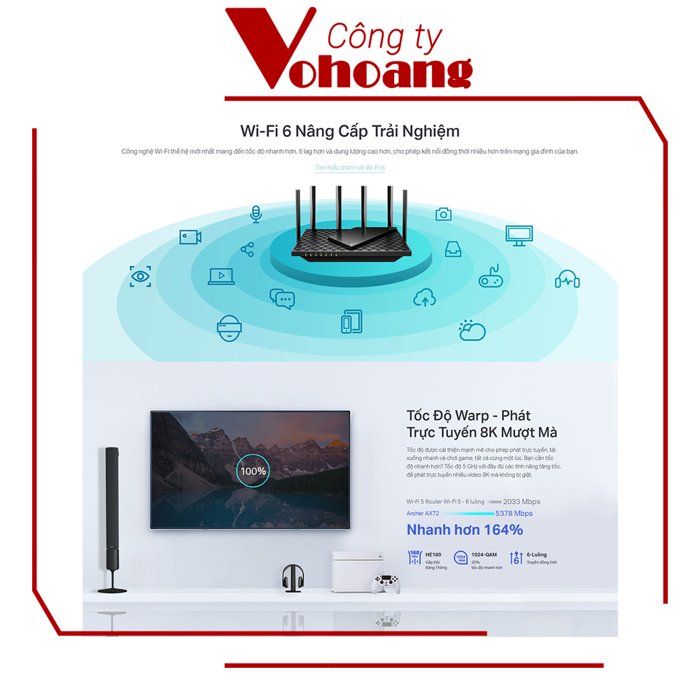 - Đầy đủ tính năng Wi-Fi 6: Trang bị cấu trúc hàng đầu của 4T4R và HE160 trên băng tần 5 GHz để cho phép kết nối cực nhanh 4.8 Gbps