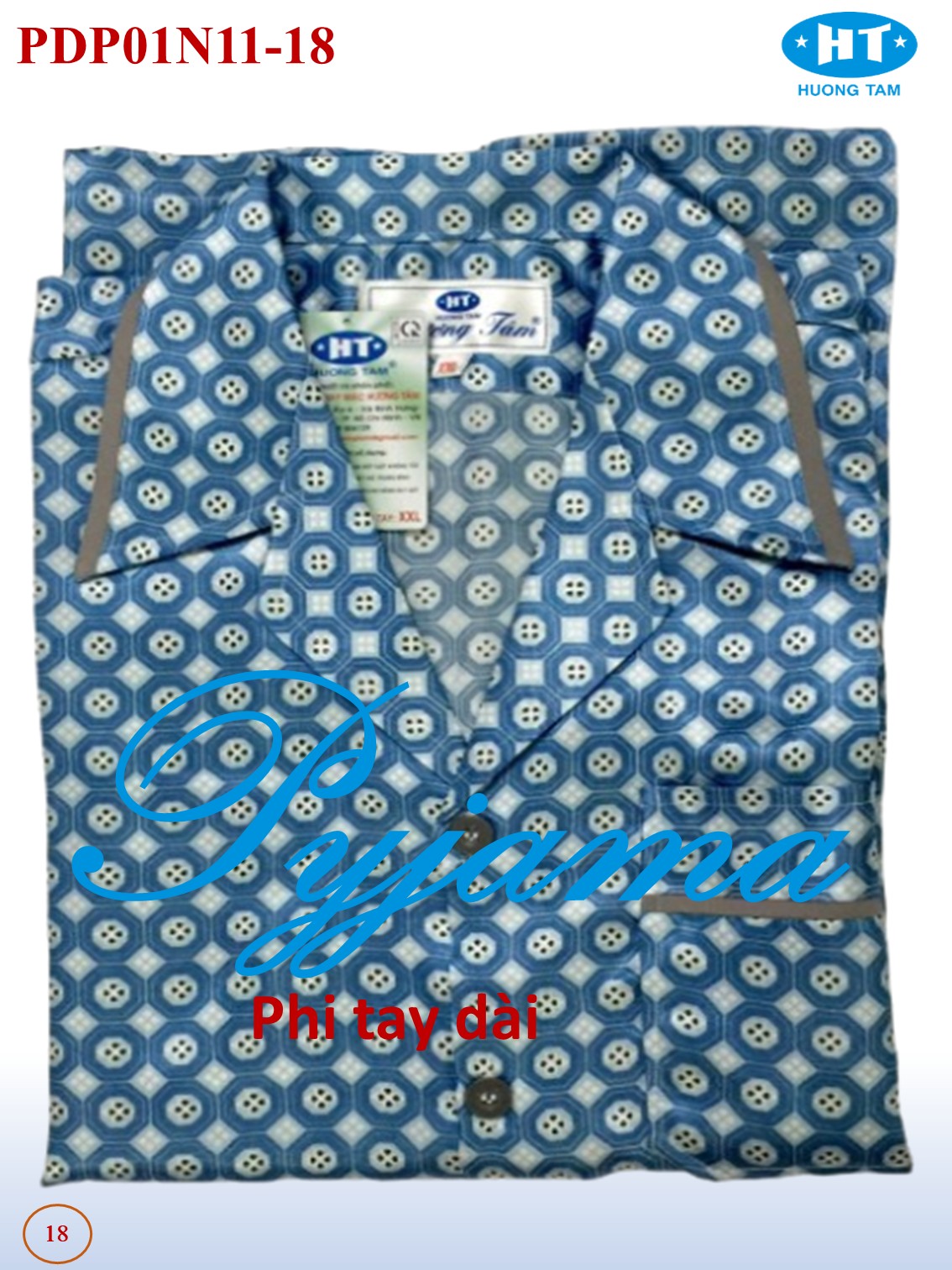 Thông số kỹ thuật Bộ Pyjama HUONGTAM Phi tay dài nam cao cấp(PDP01N11). Chất liệu vải polyester mềm mại, thoáng mát, không phai màu.