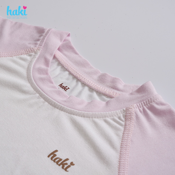 - Những bộ quần áo sơ sinh của Haki được thiết kế tỉ mỉ, cẩn thận, làm bo cổ tay, bo cổ chân, không còn đường gân may ráp nối lên cọ vào da em bé, gây khó chiu, ngứa ngáy hoặc có thể gây mẩn da nếu như sợi vải cứng và sợi chỉ sử dụng không đạt tiêu chuẩn an toàn.