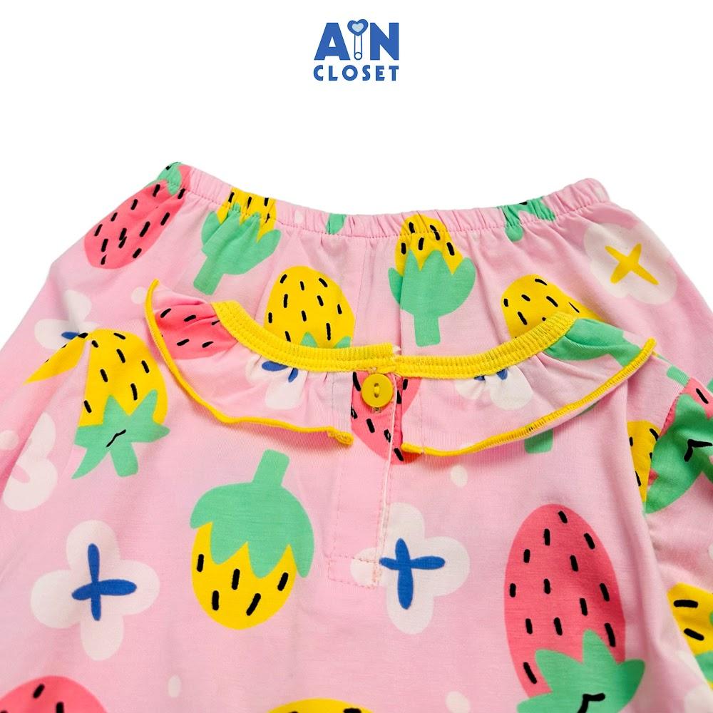Thông số kỹ thuật Bộ quần áo dài bé gái họa tiết Dâu Vàng nền hồng thun cotton - AICDBG1MXTXY - AIN Closet