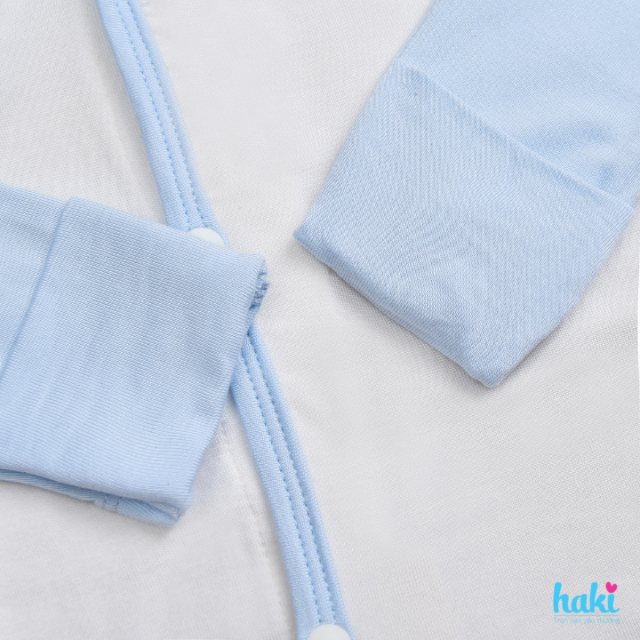 Thông số kỹ thuật Bộ quần áo sơ sinh cài chéo, tay raglan phối màu vải Bamboo cao cấp Haki BB036, set dài tay cho bé trai bé gái từ 2,5 - 8kg, bộ sơ sinh sợi tre cho bé hàng chính hãng HAKI