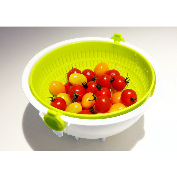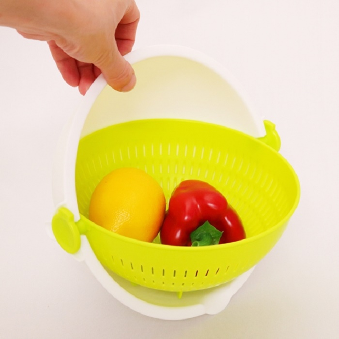 - Rổ Nhựa có thể xoay làm ráo nước là dụng cụ dùng để quay rau, củ, quả giúp ráo nước 1 cách nhanh chóng, thuận tiện mà vẫn đảm bảo các loại rau không bị dập, nát.