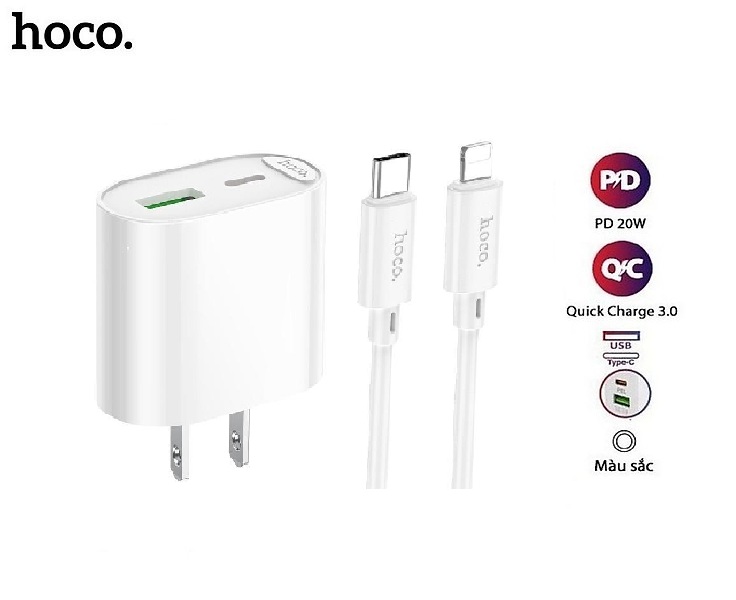 Thông số kỹ thuật Bộ Sạc Nhanh Cho Iphone PD20W Hoco C80/C80A/C109 2 cổng Usb và Type-C kèm dây sạc Type-C sang iPhone 1M Sạc 0-50% Pin trong 30 phút - Hàng chính hãng