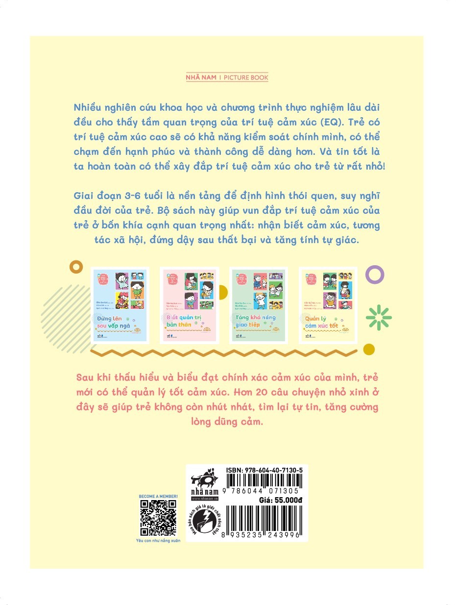 Nhiều nghiên cứu khoa học và chương trình thực nghiệm lâu dài đều cho thấy tầm quan trọng của trí tuệ cảm xúc (EQ). Trẻ có trí tuệ cảm xúc cao sẽ có khả năng kiểm soát chính mình, có thể chạm đến hạnh phúc và thành công dễ dàng hơn. Và tin tốt là ta hoàn toàn có thể xây đắp trí tuệ cảm xúc cho trẻ từ rất nhỏ!Giai đoạn 3-6 tuổi là nền tảng để định hình thói quen, suy nghĩ đầu đời của trẻ. Bộ sách này giúp vun đắp trí tuệ cảm xúc của trẻ ở bốn khía cạnh quan trọng nhất: nhận biết cảm xúc, tương tác xã hội, đứng dậy sau thất bại và tăng tính tự giác.