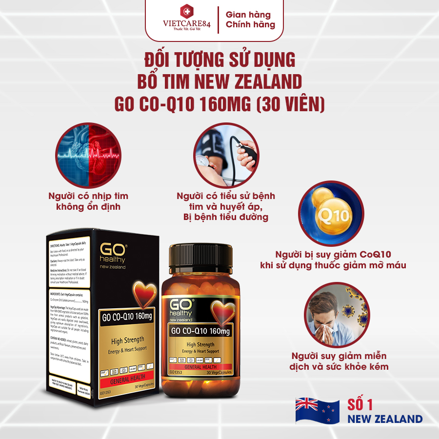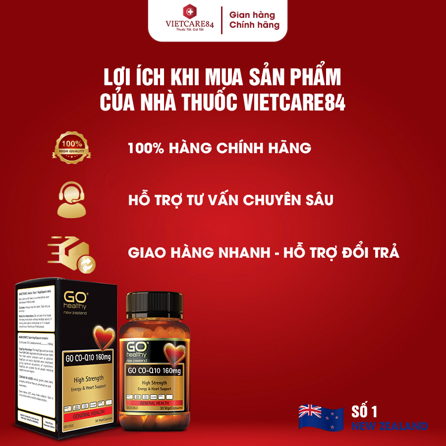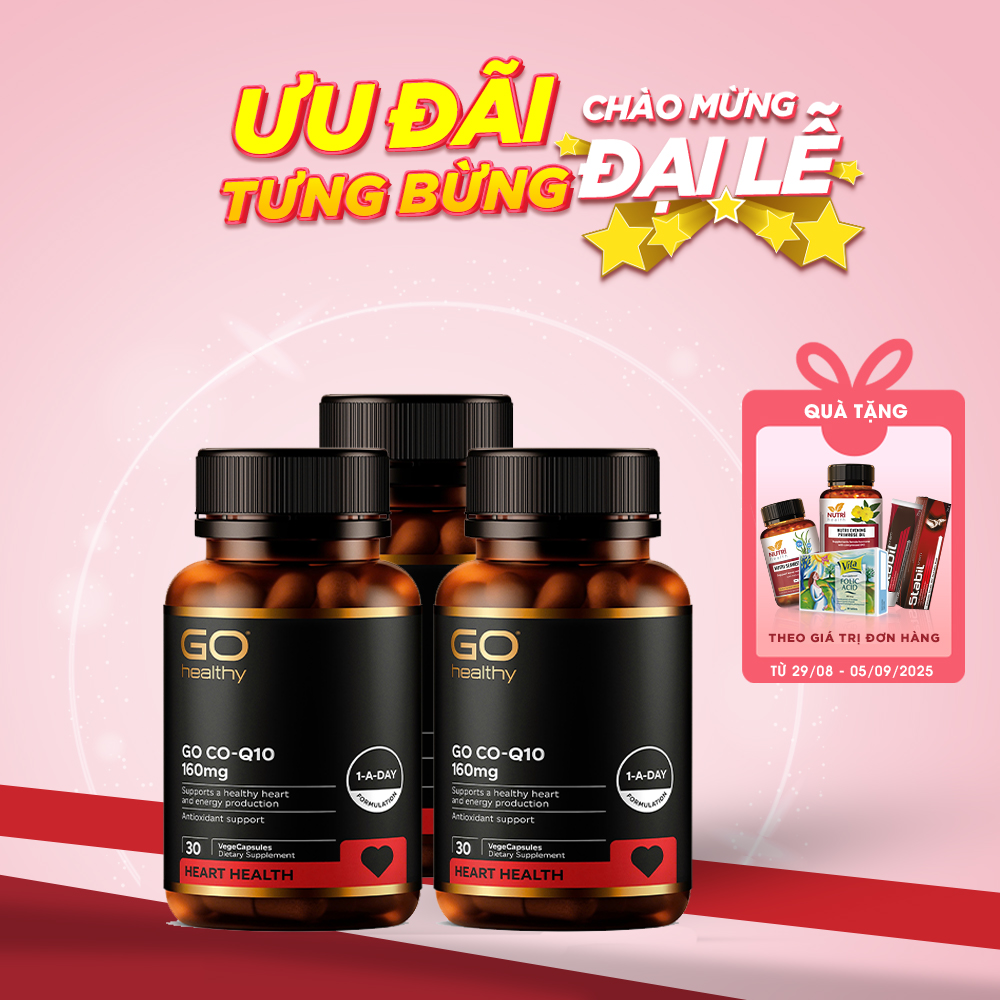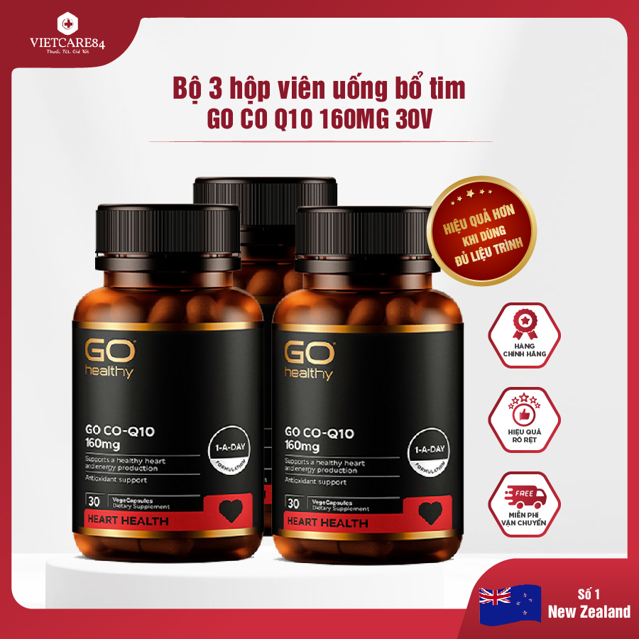 COMBO 3 HỘP BỔ TIM GO CO Q10 160MG NEW ZEALAND- TĂNG SỨC ĐỀ KHÁNG- GIẢM NGUY CƠ TAI BIẾN TIM MẠCH