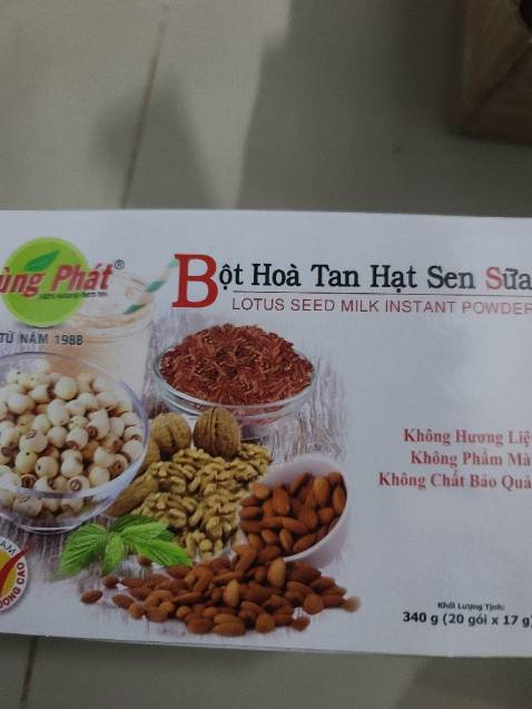 Sản phẩm được chế biến từ nguyên liệu thật (Hạt Sen , Hạnh Nhân) không dùng hương thay thế Hạt Sen, Hạnh Nhân. Do đó, khi pha sản phẩm, một số nguyên liệu sẽ không hòa tan hoàn toàn trong nước. Khi thưởng thức, bạn sẽ cảm nhận được hết mùi vị trọn vẹn của sản phẩm.
