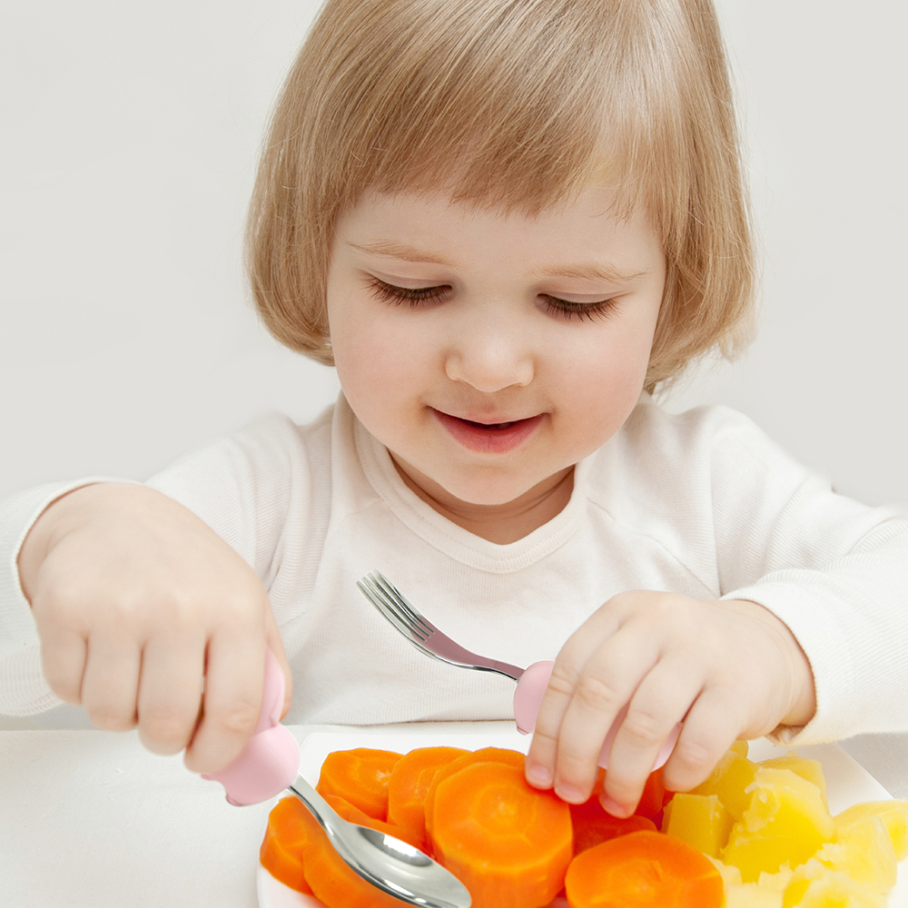 - Cán thìa nĩa được thiết kế cho bé dễ cầm nắm