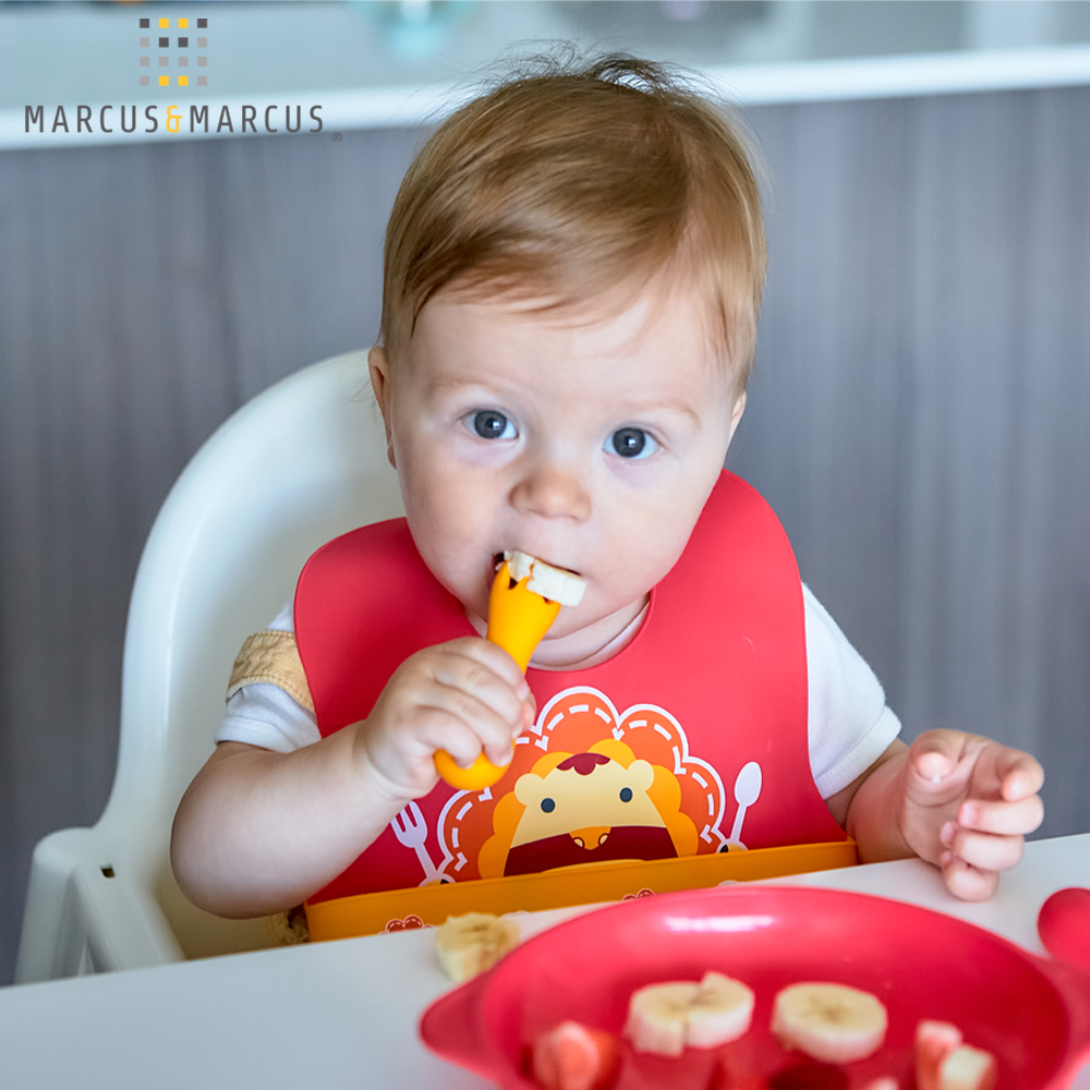 Bộ thìa nĩa tập ăn silicon Palm Grasp Marcus & Marcus được thiết kế cho đôi tay bé nhỏ, là dụng cụ hoàn hảo cho bé tập ăn. Cả thìa và nĩa được làm bằng silicon nên rất êm ái cho nướu nhạy cảm của bé, và tay cầm thon tròn rất dễ cho bé cầm nắm. Bộ thìa nĩa tập ăn silicon Palm Grasp được làm từ chất liệu silicon dùng trong lĩnh vực y tế và thực phẩm không chứa BPA và Phthalate.
