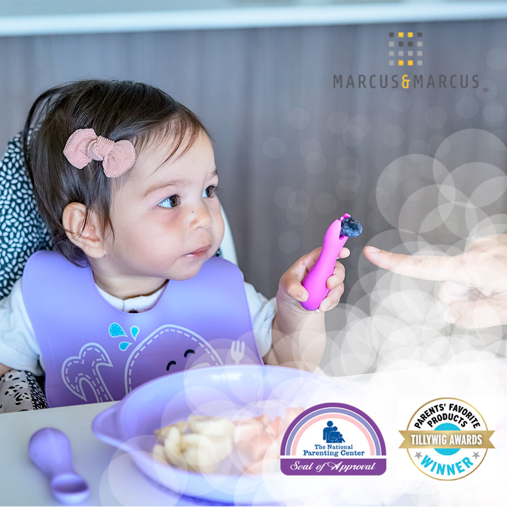 Đặc điểm bộ thìa nĩa tập ăn silicon Palm Grasp Marcus & Marcus: