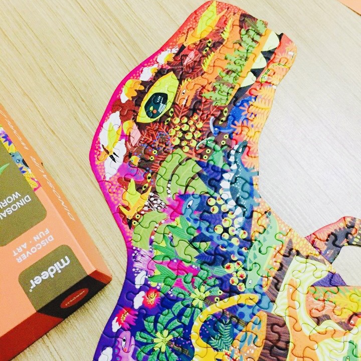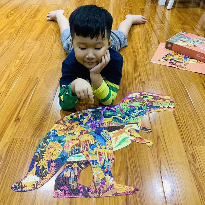- Khi hoàn thành bộ xếp hình, ba mẹ có thể lồng khung thành phẩm để treo lên trường để trẻ có thể tạo ra câu chuyện về chuyến khám phá thế giới khủng long qua trí tưởng tựơng phong phú của mình.