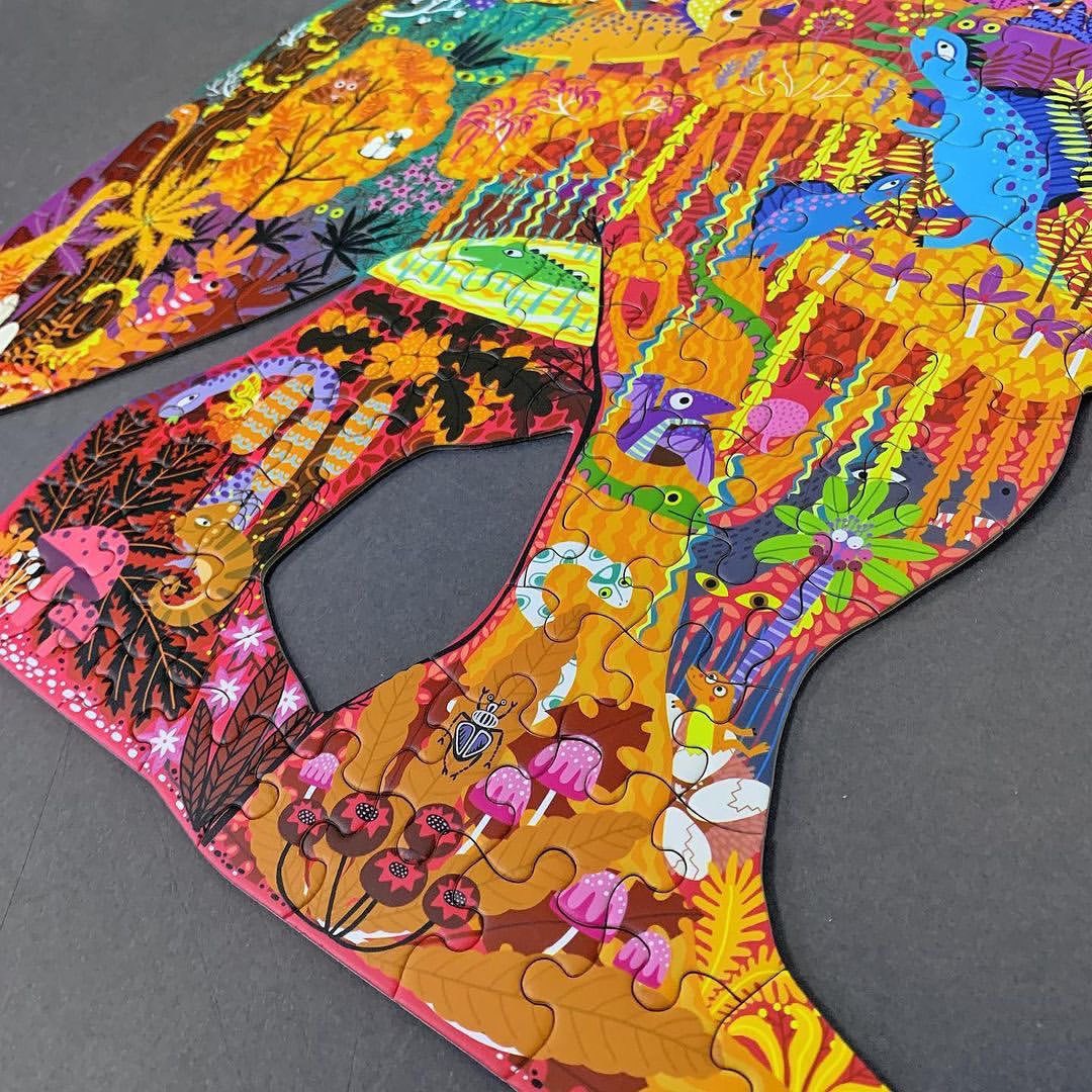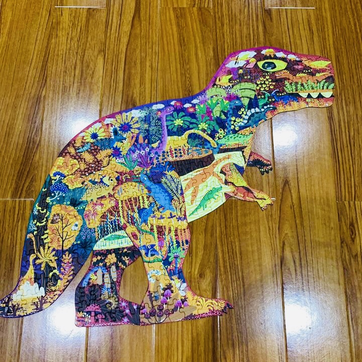 - Tranh minh họa chú khủng long được tạo nên bởi nhiều loài khủng long đầy màu sắc khác. Một thế giới khủng long huyền bí sẽ hiện ra khi tất cả các mảnh đã được ghép lại với nhau.
