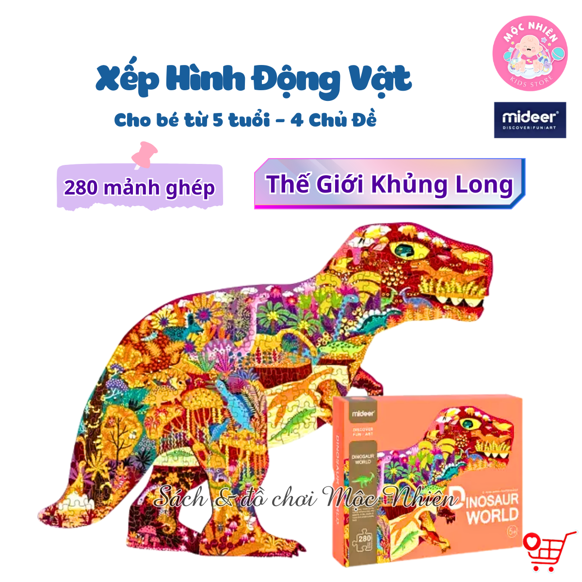 Thông số kỹ thuật Bộ tranh xếp hình ghép hình puzzle Mideer 280 mảnh ghép 04 chủ đề - Thế giới khủng long - Vỏ sò cá heo - Voi khổng lồ và Tê giác