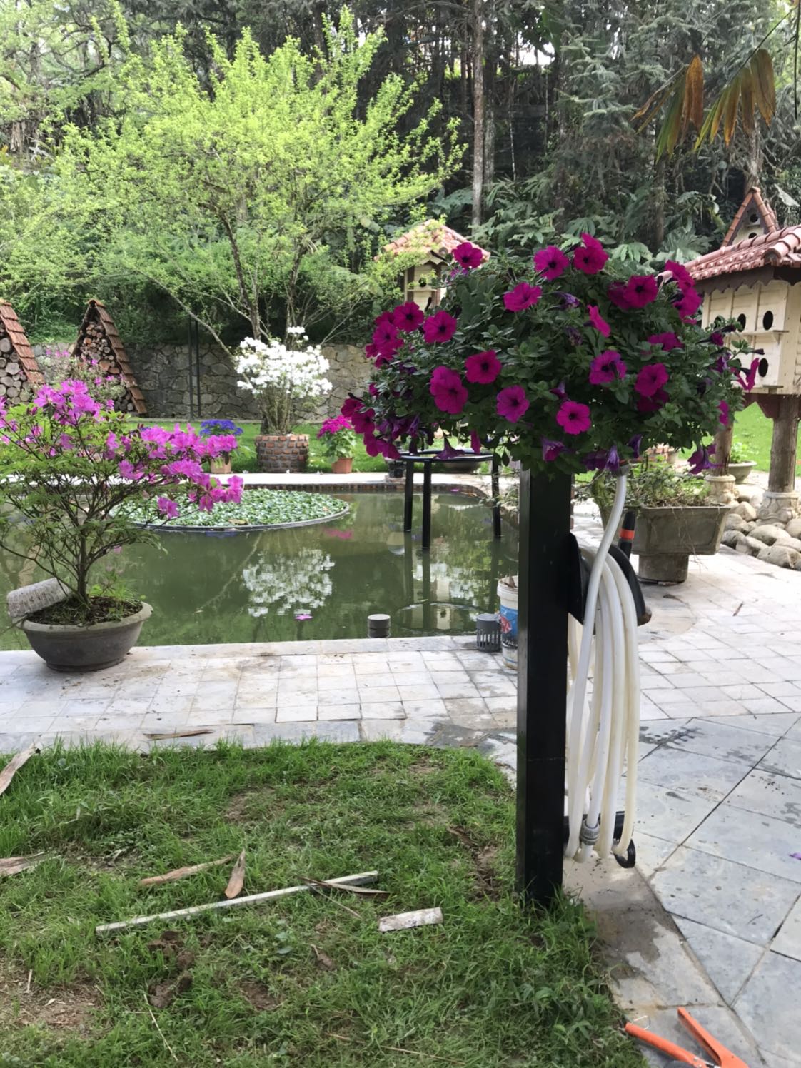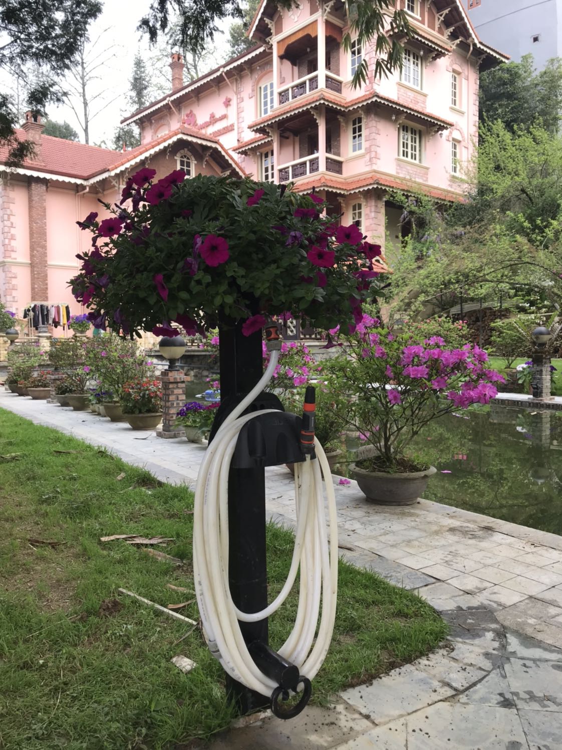 Bộ vòi gồm có cút nối, vòi nối để kết hợp với ống dây Gardena đường kính 13mm (1/2'') với 2 chế độ phun tưới và loe.