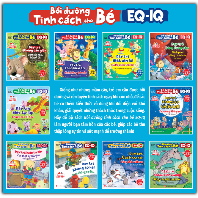 Giống như những mầm cây, trẻ em cần được bởi dưỡng và rèn luyện tính cách ngay khi còn nhỏ, để các bé có thêm kiến thức và dũng khí đối diện với khó khăn, giải quyết những thách thức trong cuộc sống. Hãy để bộ sách Bồi dưỡng tính cách cho bé EQ-10 làm người bạn tâm hồn của các bé, giúp các bé thu thập lòng tự tin và sức mạnh để trưởng thành!Giá sản phẩm trên Tiki đã bao gồm thuế theo luật hiện hành. Bên cạnh đó, tuỳ vào loại sản phẩm, hình thức và địa chỉ giao hàng mà có thể phát sinh thêm chi phí khác như phí vận chuyển, phụ phí hàng cồng kềnh, thuế nhập khẩu (đối với đơn hàng giao từ nước ngoài có giá trị trên 1 triệu đồng).....