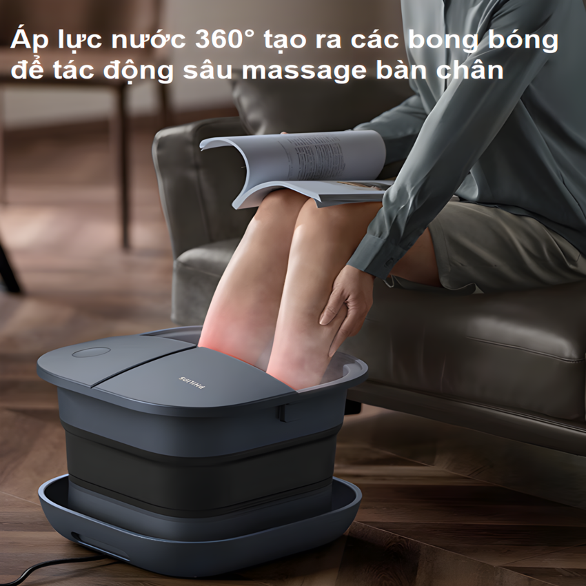 - Bồn ngâm chân massage Philips PPM5103F sử dụng phương pháp massage thủy nhiệt hỗ trợ rất tốt trong việc chữa bệnh xương khớp, thư giãn đôi bàn chân, thúc đẩy quá trình lưu thông khí huyết, giảm tê bì chân tay, xua tan mệt mỏi, căng thẳng, mang lại giấc ngủ ngon và sâu hơn, trị các bệnh ngoài da khử mùi hôi chân, đào thải độc tố trong cơ thể.
