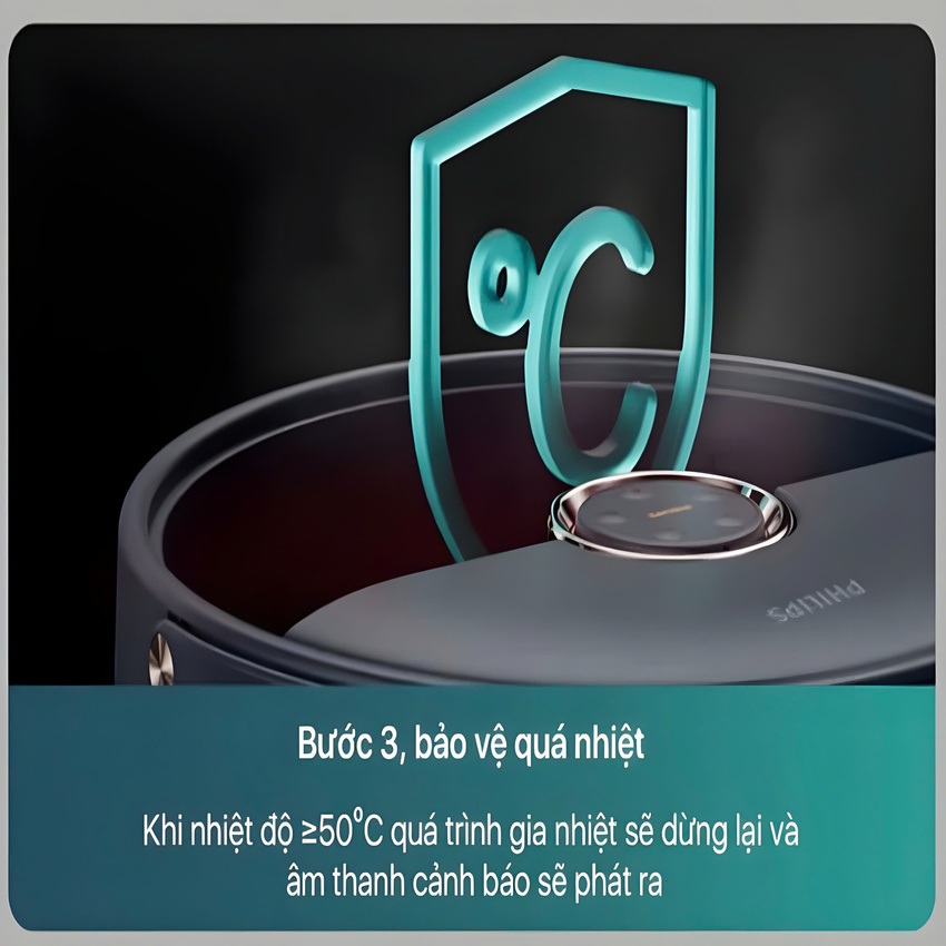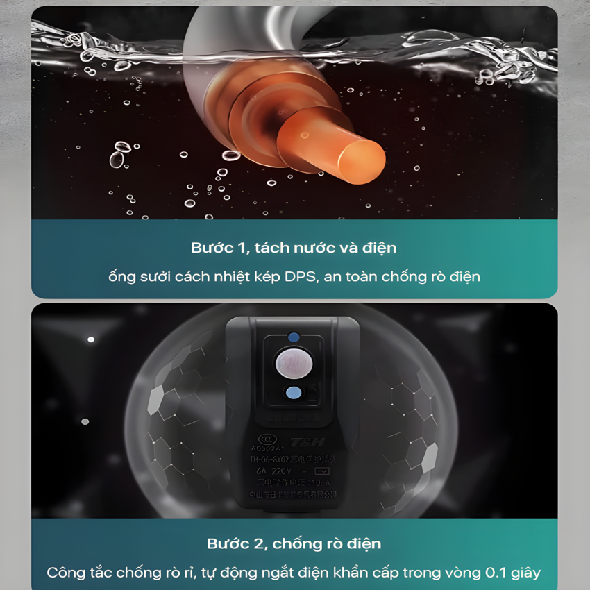 - Trang bị 3 bước bảo vệ an toàn, chống rò điện, chống quá nhiệt, điện nước không tiếp xúc, cho bạn an tâm hơn khi sử dụng