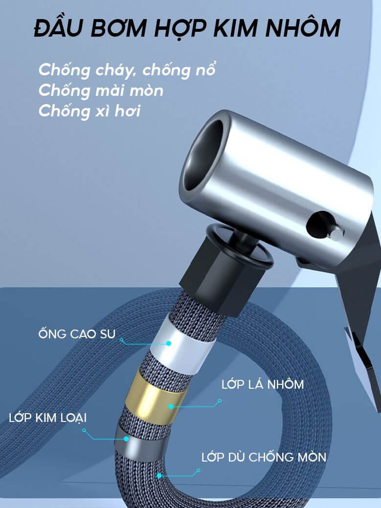 - Tương thích với hầu hết các thiết bị cần bơm (xe máy, xe đạp, xe điện, bóng, phao bơi…).