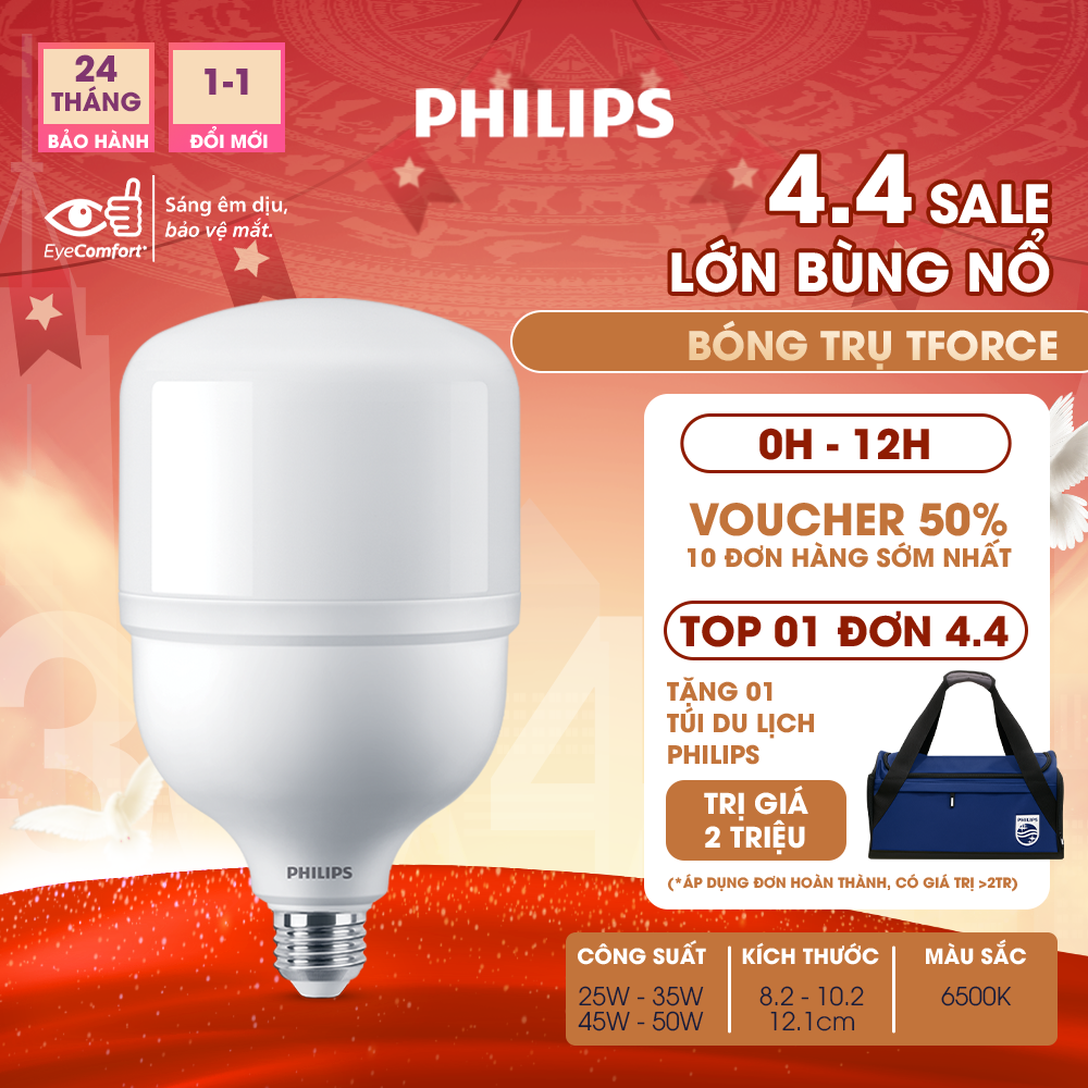 Bóng đèn Philips trụ TForce siêu sáng (25W,35W,45W, 50W) - Ánh sáng trắng 6500K (01 bóng)