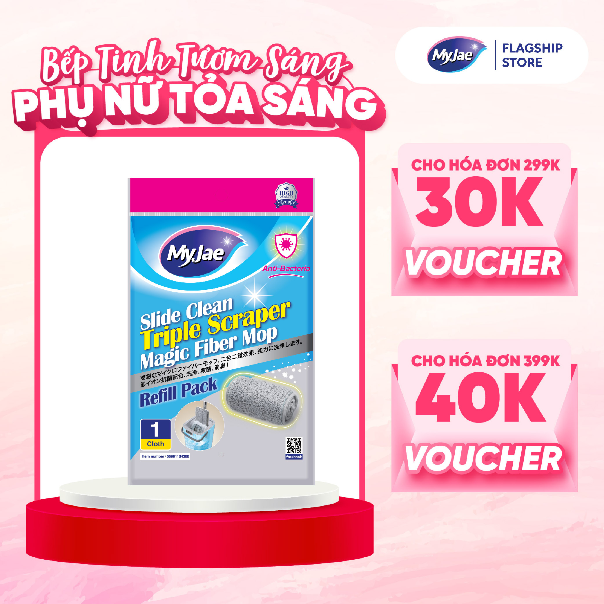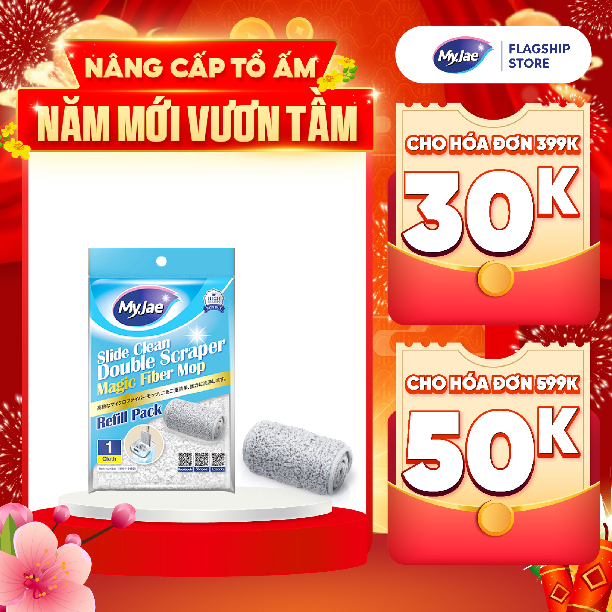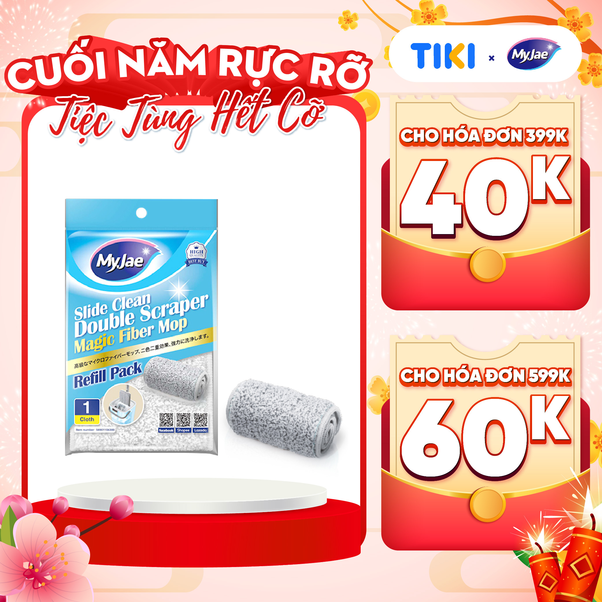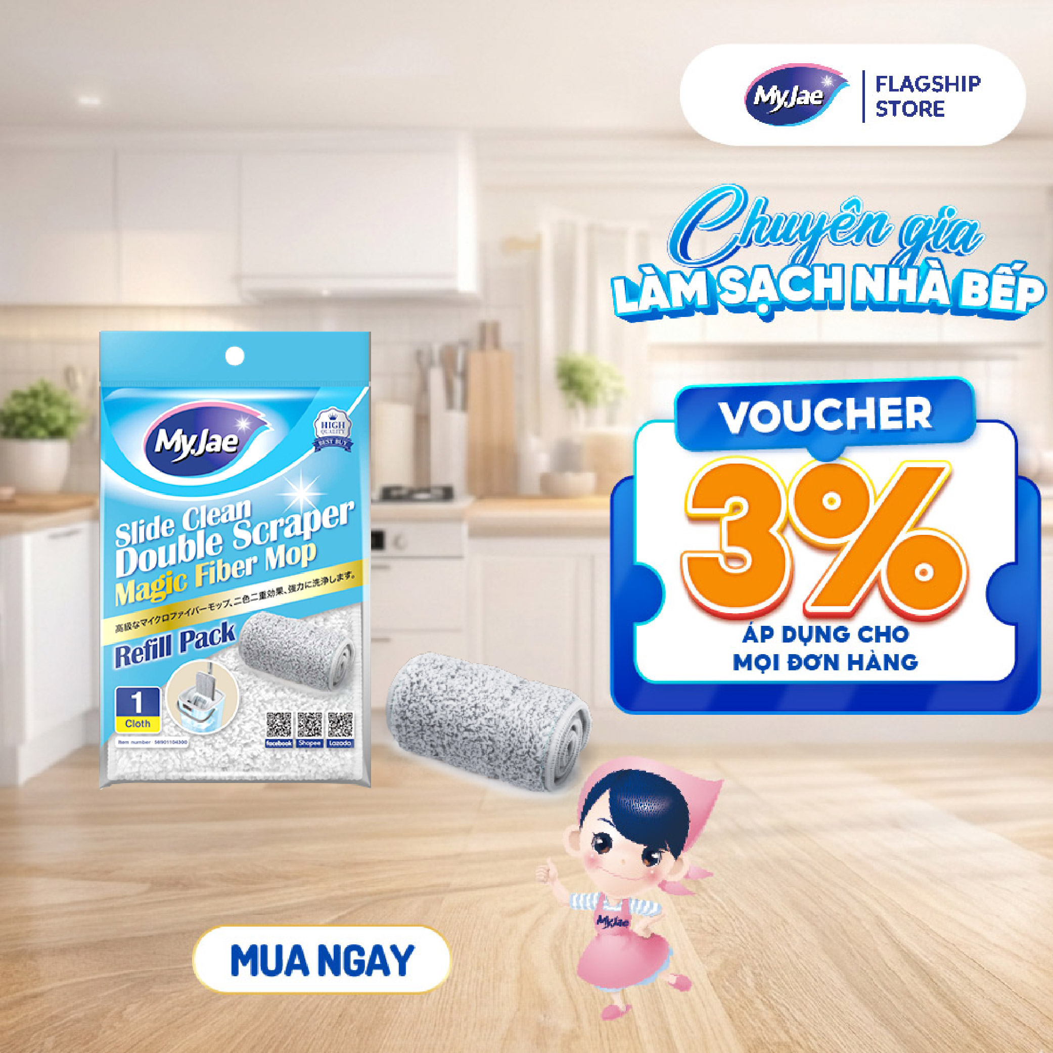 Thông số kỹ thuật (Chọn Loại) Bông Lau Thay Thế MyJae Sợi Microfiber Dành Cho Cây Lau Nhà Tự Vắt 2 Ngăn 33cm x 12cm