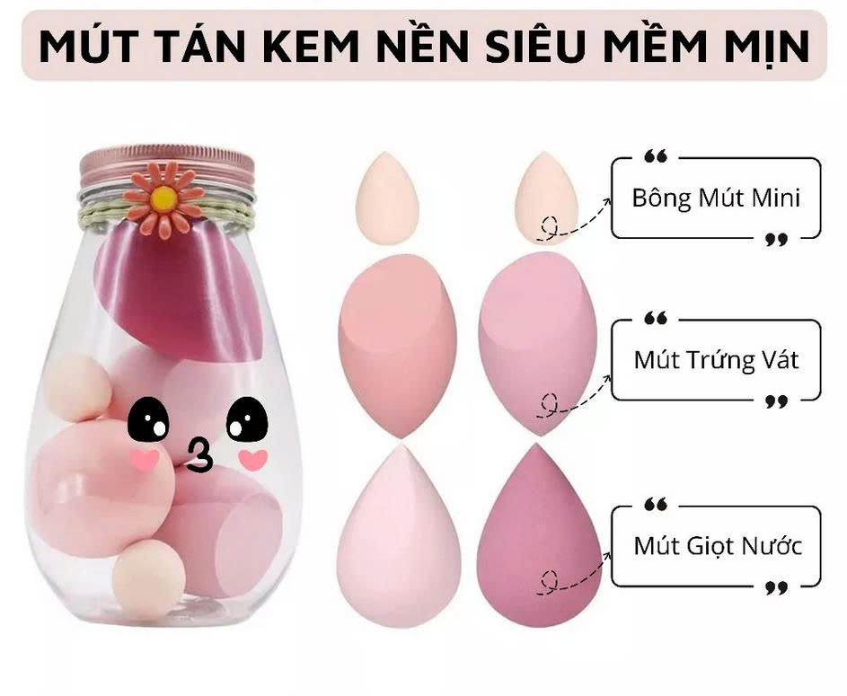 Lọ 6 Mút Trang Điểm Tán Kem Nền Dạng Khô Và Ướt Che Khuyết Điểm
