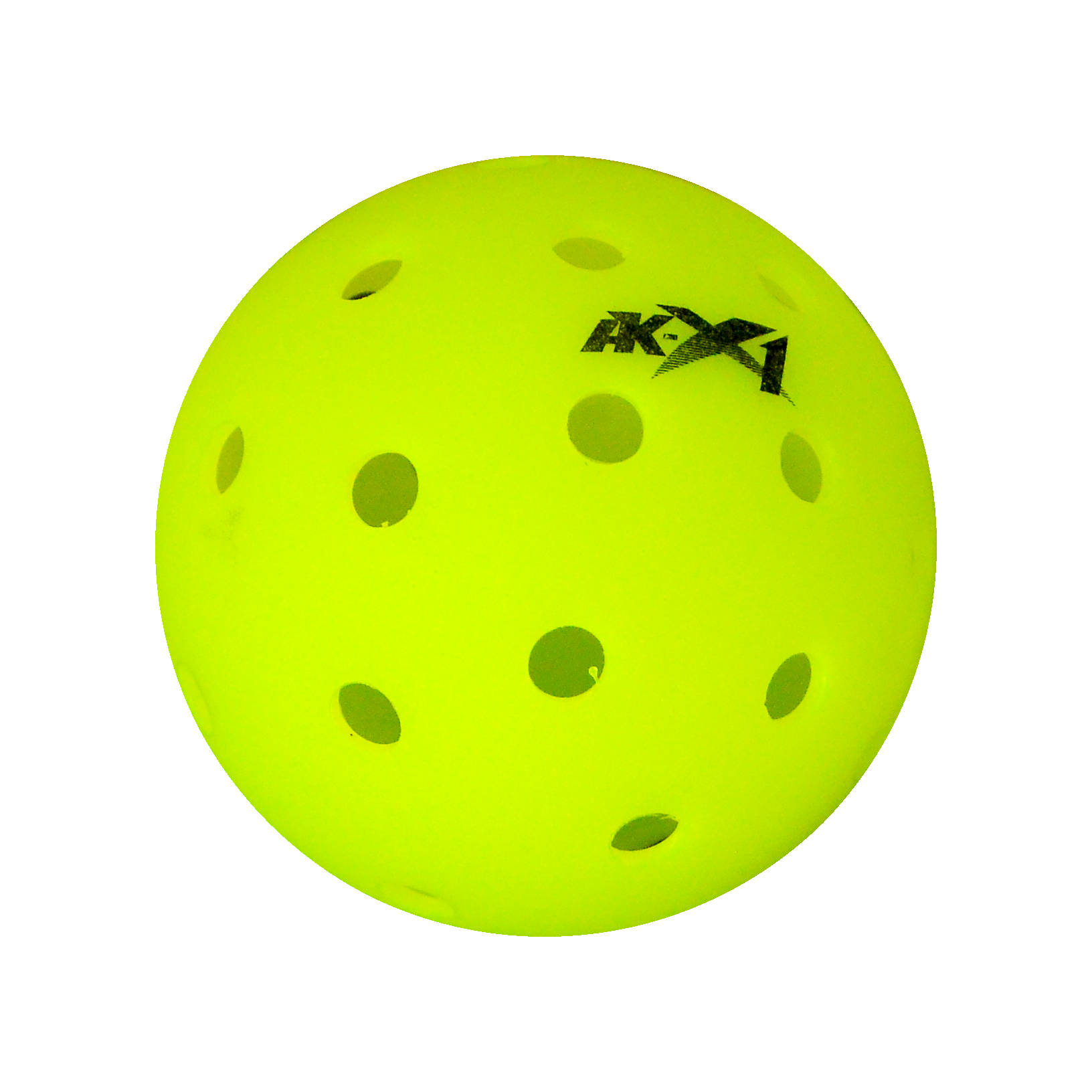 Bóng Pickleball AK-X1 Sử dụng vật liệu PE cao cấp được đúc khuyên khối, 40 lỗ. Trọng lượng, kích thước và độ nảy tiêu chuẩn ngoài trời. Bóng có đường bay ổn định, bám mặt vợt và rất bền.