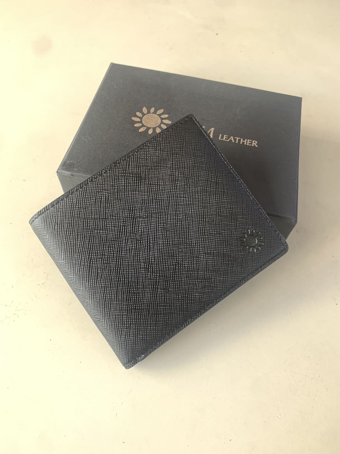 Mẫu ví nam sử dụng chất da Saffiano nhập khẩu. Ví làm bằng da bò thuộc nguyên miếng, chất liệu da bò thật cao cấp 100%.