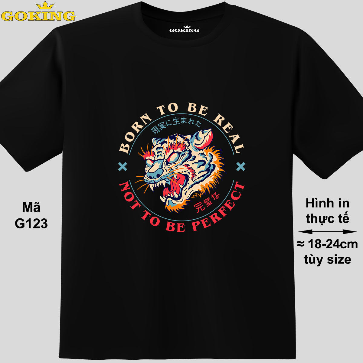 Thông số kỹ thuật BORN TO BE REAL, NOT TO BE PERFECT, mã G123. Áo thun in hình Hổ siêu đẹp. Áo phông hàng hiệu GOKING cho nam nữ, cặp đôi, teen, trung niên. Quà tặng cao cấp cho gia đình, đồng nghiệp.
