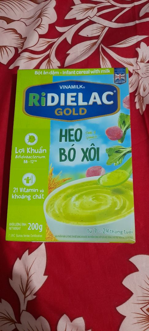 Thông số kỹ thuật Bột Ăn Dặm Vinamilk Ridielac Gold Vị Heo Bó Xôi (200g)