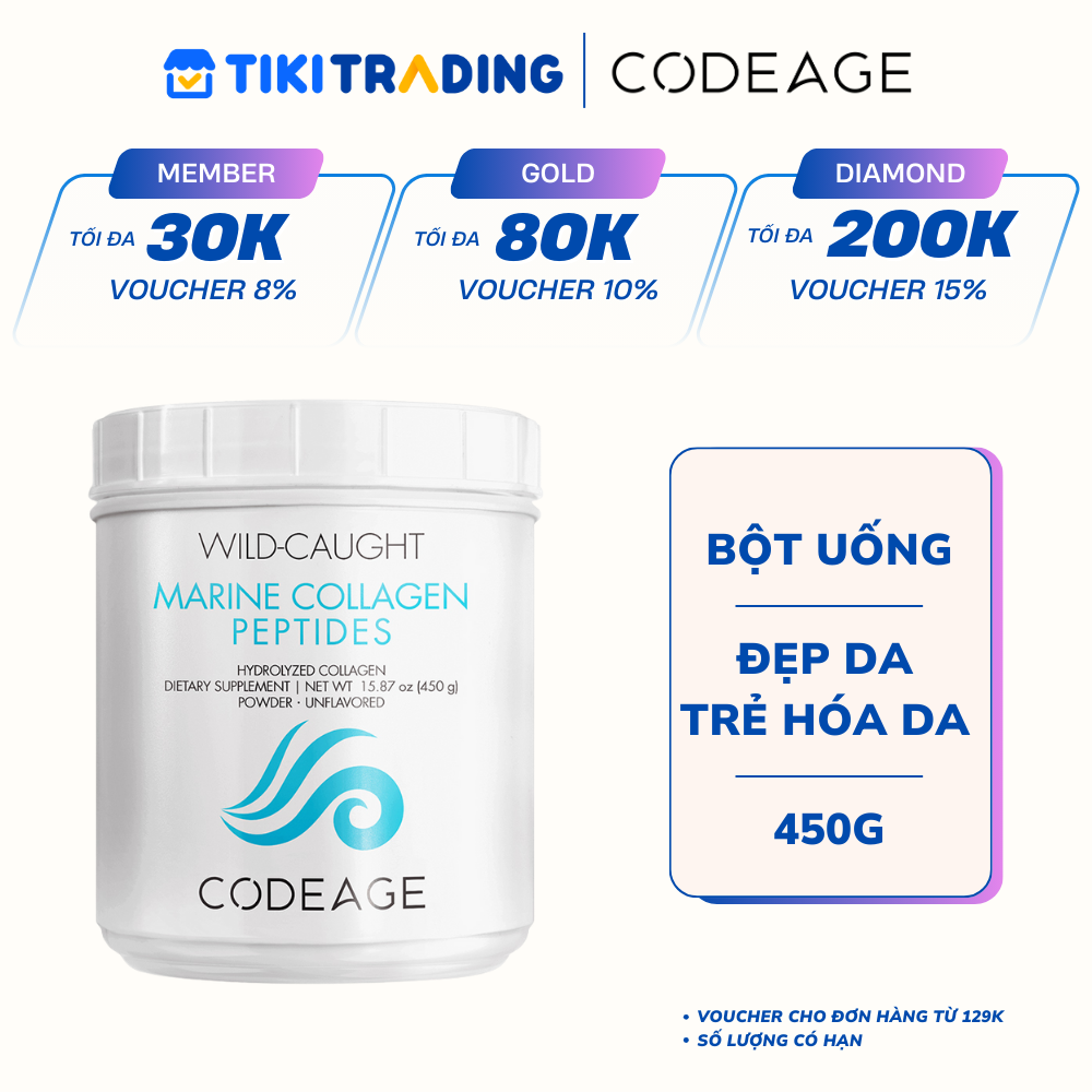 Thông số kỹ thuật Bột Collagen Codeage Giúp Đẹp Da, Trẻ Hóa Da Codeage Marine Collagen Peptide 450g